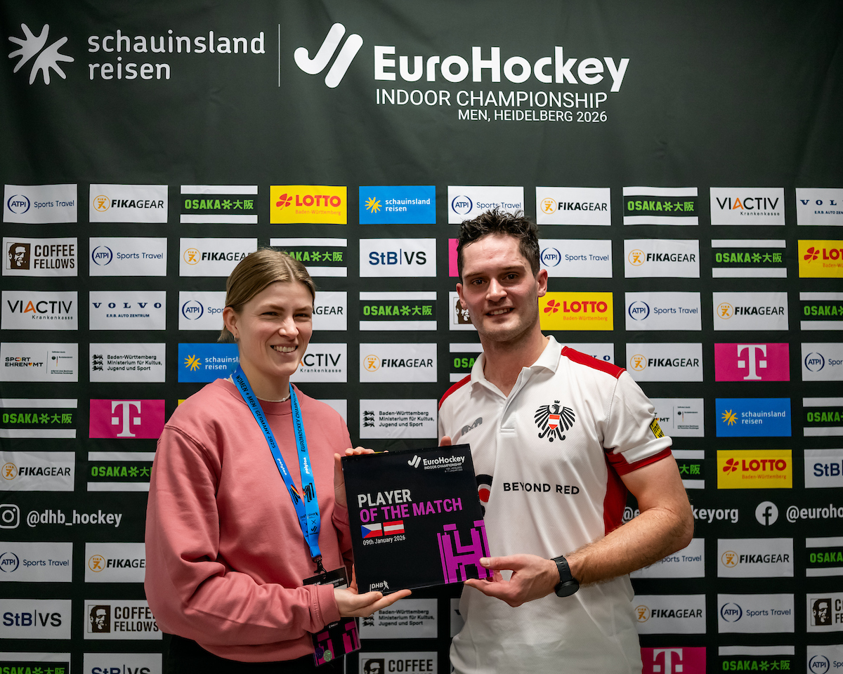 In der 34. Minute wieder Strafecke Österreich - diese kann aber nicht erfolgreich abgeschlossen werden. Es folgen hektische Minuten mit viel wechselndem Ballbesitz. Tschechien mit hohem Pressing und sechs Feldspielern. Noch 2:30 Minuten. Losonci an der linken Bande mit einer schnellen Drehung und sein Ball auf das leere Tor verpasst dieses um Zentimeter.