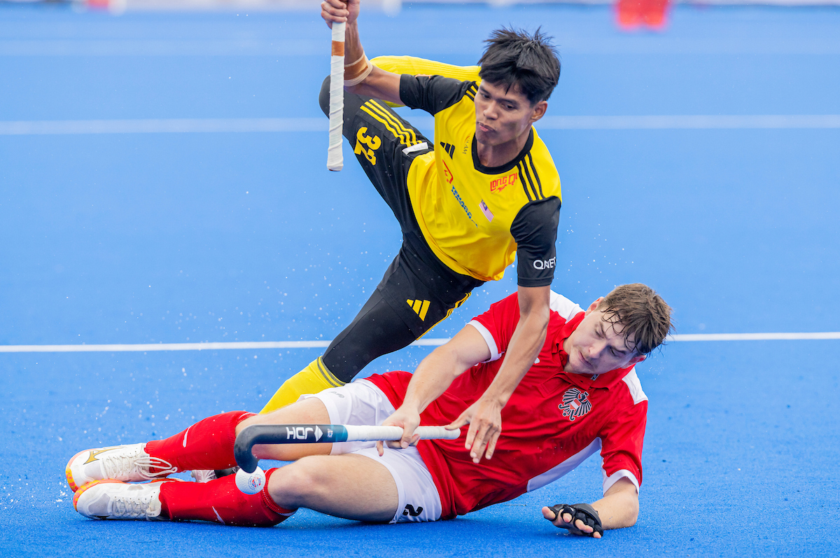 Strafecke für Malaysien, aber Julian Kaiser antizipiert gut und läuft den Ball ab. Auch die nächste Strafecke in der 42. Minute kann von Österreich neutralisiert werden. Österreich macht sich viel gute Aufbauarbeit zunichte, indem sie unkonzentriert in der Ballannahme sind oder das Passspiel nicht exakt genug ausgeführt wird. Immer wieder kommen sie in Situationen, in denen sie sich den Ball erst wieder mühsam zurückerobern müssen.