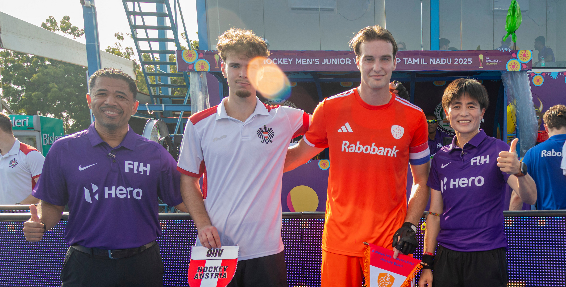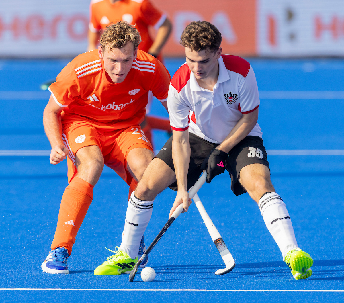 Schlechte Attacke der Österreicher gleich nach Seitenwechsel und Strafecke in der 31. Minute für Niederlande. Ein kraftvoller Eckenschlenzer durch die Beine des österreichischen Tormanns bringt das schnelle 3:0.