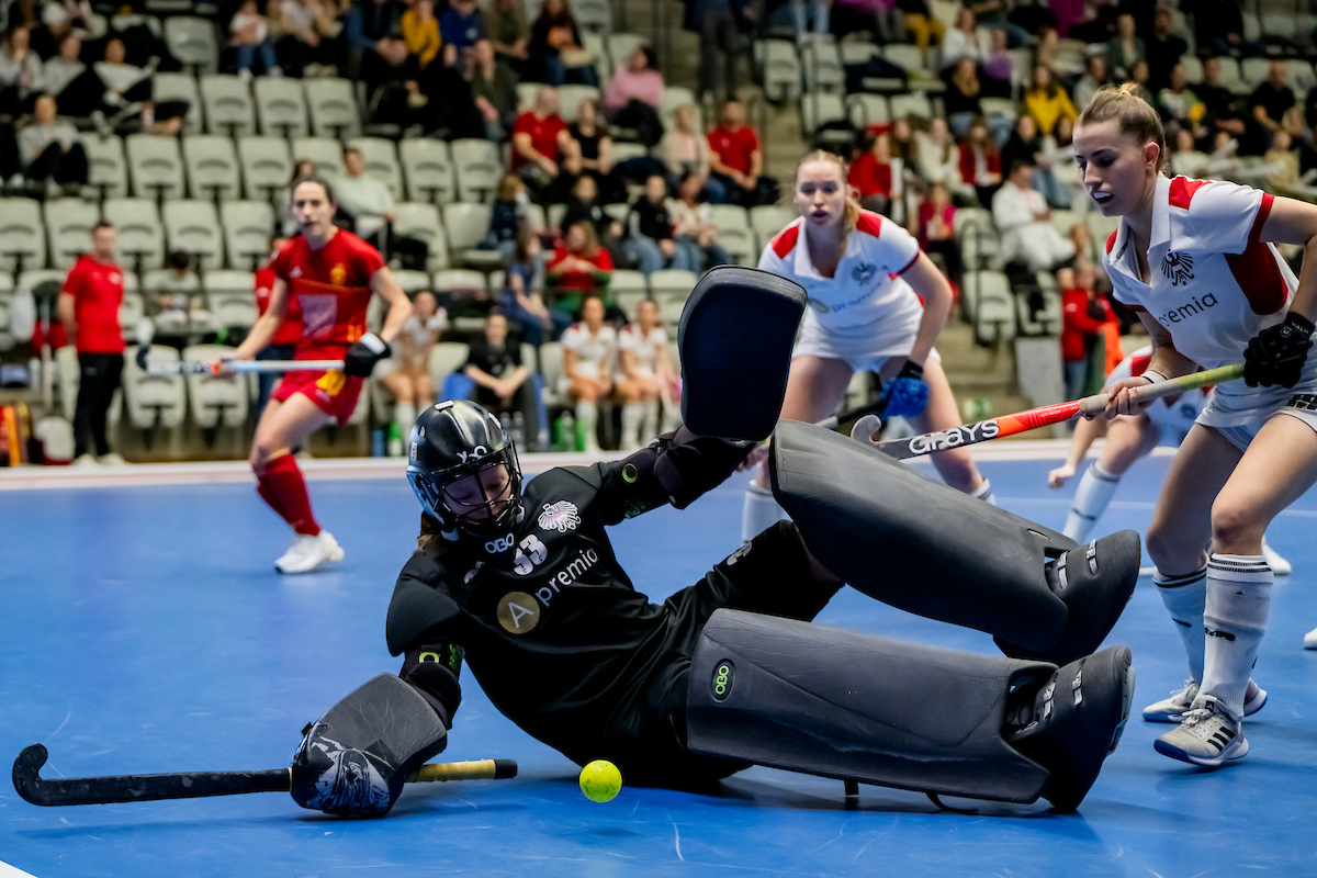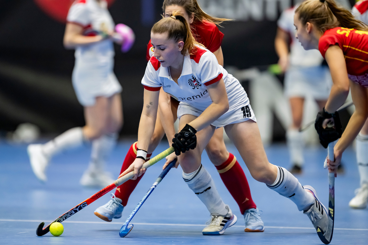 Johanna Czech scheitert bei den nächsten zwei Strafecken an der spanischen Abwehr, einmal rettet die Querlatte. Österreich ist durch eine gelbe Karte für Spanien in Überzahl, kann aber keine Vorteil daraus ziehen und es bleibt beim 2:2 nach drei Viertel.