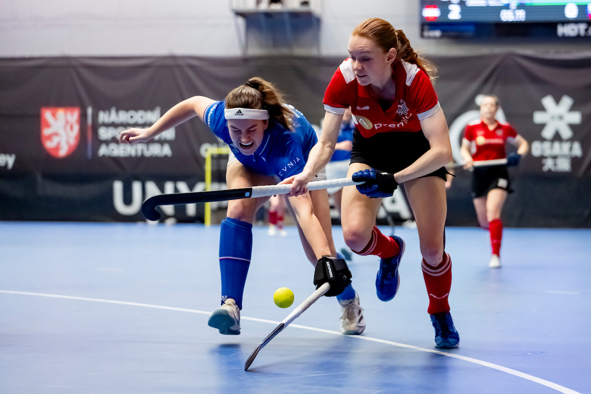 Da ist die Strafecke für Tschechien in der 34. Minute und neuerlich ist Streb die Siegerin. Österreich versucht den Ball möglichst lange in der Mannschaft zu halten, aber das ist schwer gegen den tschechischen Druck einer zusätzlichen Feldspielerin.