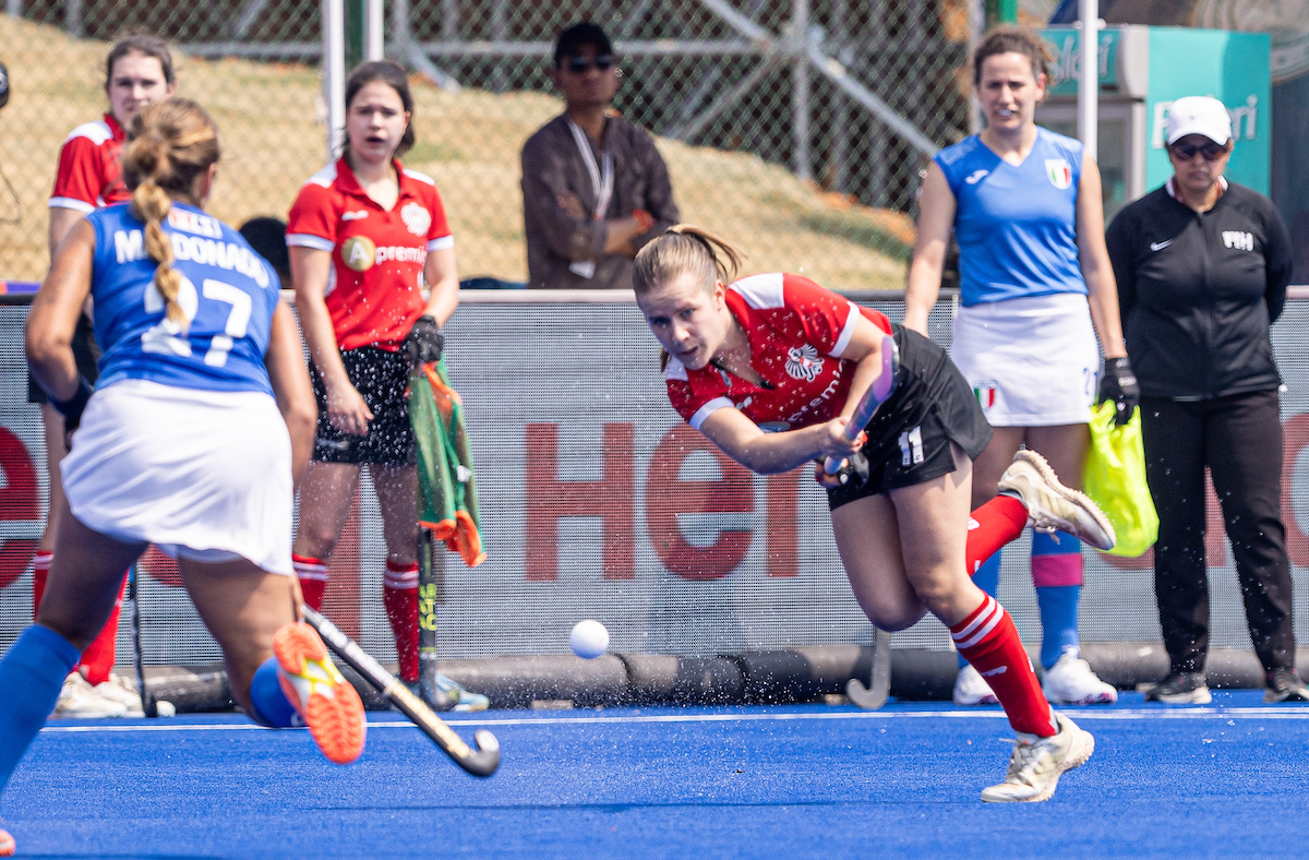 In der 56. Minute verhindert Torfrau Elena Lendl, die seit dem letzten Viertel eingetauscht wurde, den Erfolg einer Strafecke für Italien. Die Wiederholungsecke geht neben das Tor.