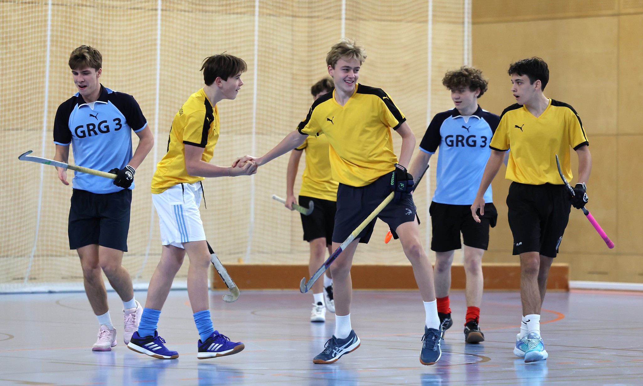 Leider fällt im Unterstufenbewerb der Burschen kurzfristig das Team des Bernoulligymnasiums aus. Der Sieger wird nun aus den vier teilnehmenden Teams ermittelt. Die Spielzeit kann durch den Ausfall von 12 auf 15 Minuten erhöht werden. Im Grunddruchgang wird schon klar, wer hier den Titel ins Visier nimmt. Die starke Mannschaft vom Albertus Magnus Gymnasium lässt nichts anbrennen, kann ohne Punkteverlust ins Finale einziehen und holt sich dort deutlich mit einem 7:1 gegen das BGRG Billrothstraße den Landesmeistertitel.