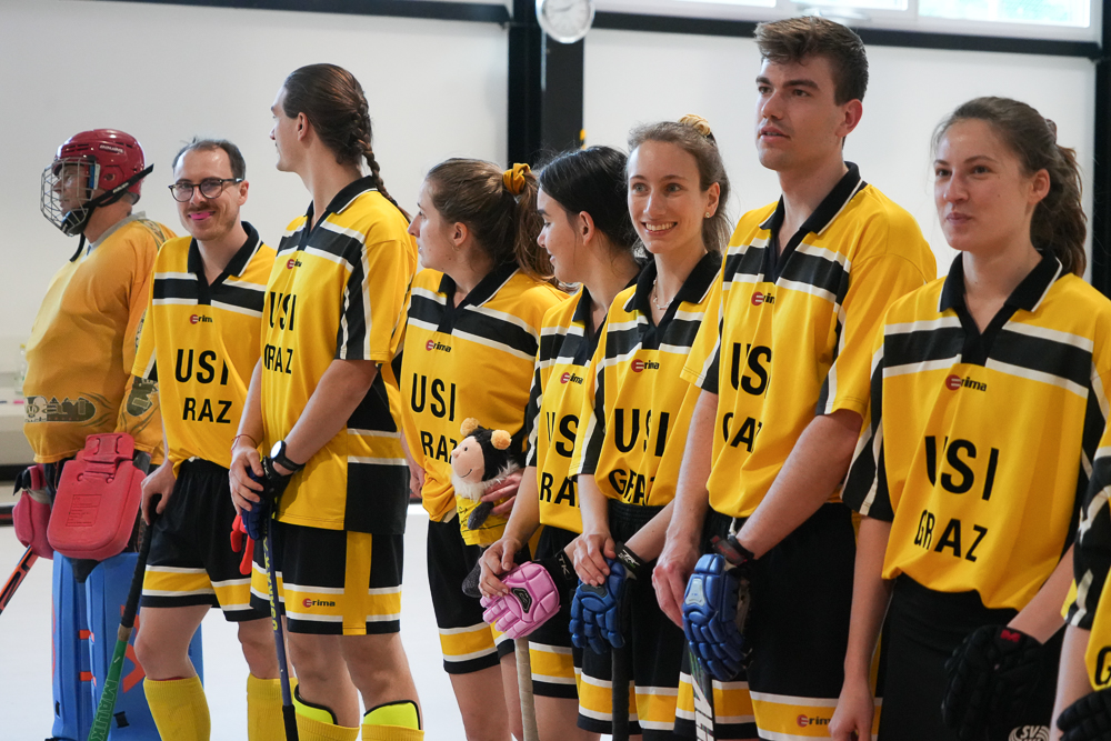 Zum Abschluss der Turnierserie trifft sich noch einmal alles, was Rang und Namen hat – und auch ein neues Team mischt mit. Erstmals dabei sind die Black Panthers aus Graz, die U16-Burschenmannschaft, die sich nach einer intensiven Saison einen besonders feinen Ausklang gönnt. Und das tun sie äußerst erfolgreich: Ohne eine einzige Niederlage holen sie sich mit 22 Punkten aus 8 Spielen souverän die inoffizielle Turnierwertung. Dahinter folgen die Hedgehogs aus Mürzzuschlag und der HC Wien, die ebenfalls kräftig für Tempo und Spannung sorgen.