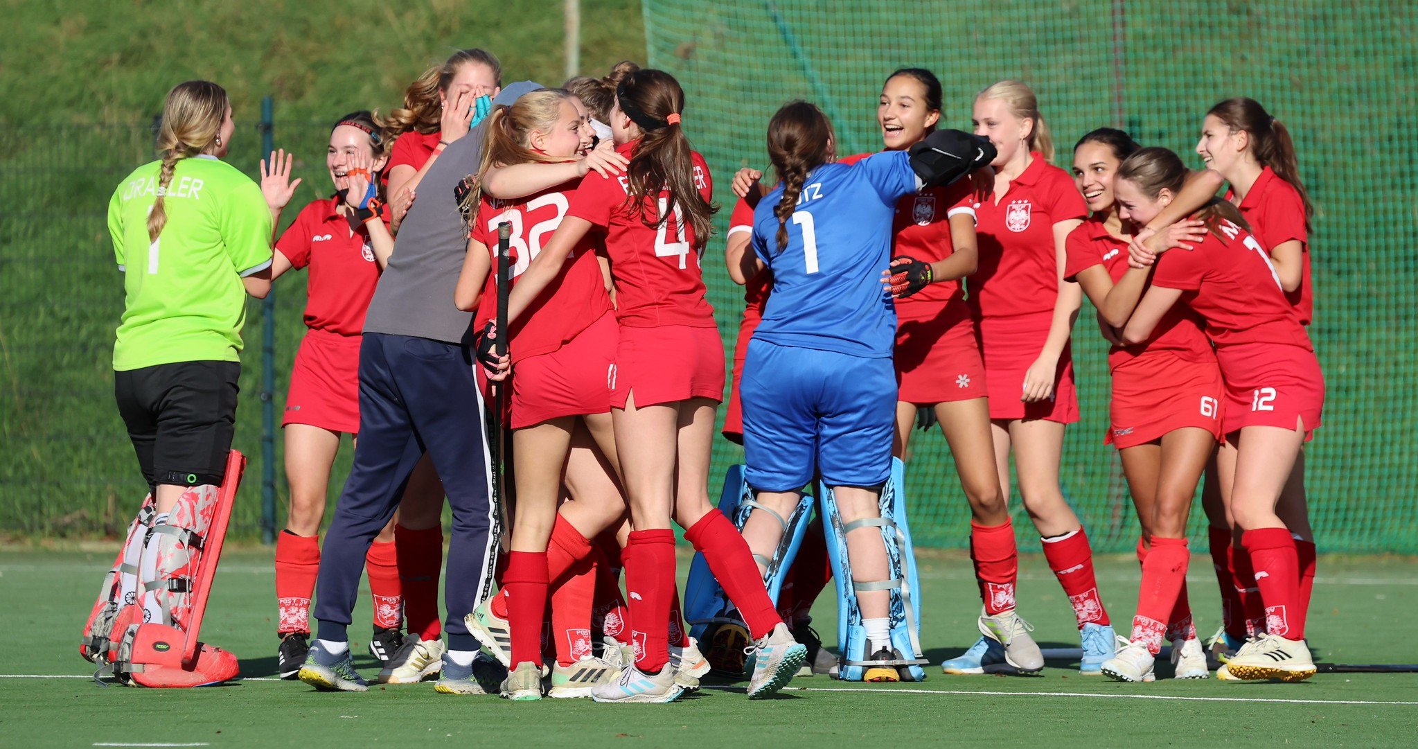 Noch 3 Minuten auf der Uhr. Post SV versucht den Ball aus dem Gefahrenbereich zu bringen. SV Arminen drückt auf den Ausgleich und erspielt sich eine Strafecke. Der Ball kann nicht gestoppt werden und die Chance ist dahin. Die Zeit läuft runter und Post SV ist Meister bei der U16 weiblich.