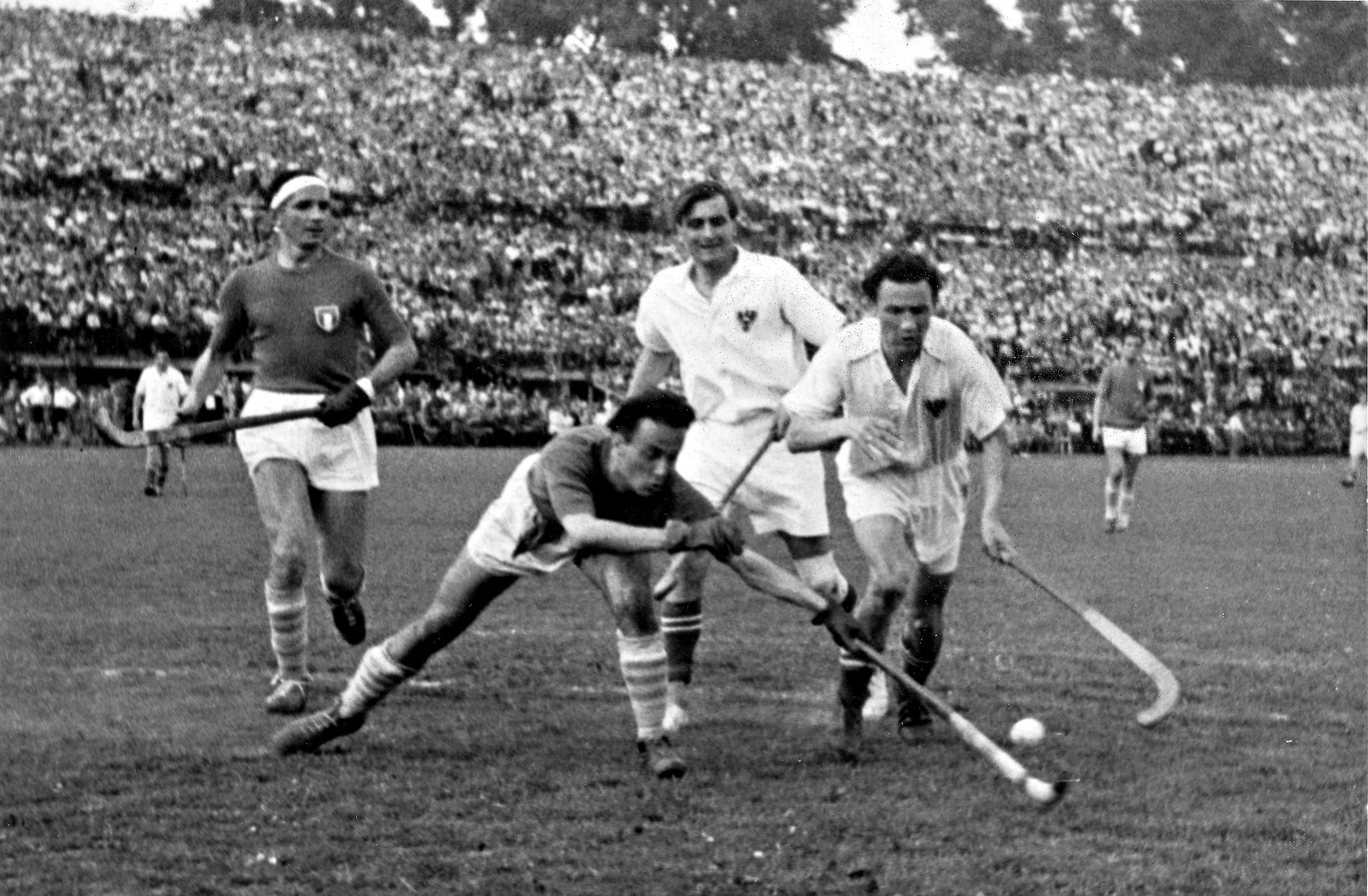 Die vor dem Krieg so ersehnte Teilnahme an Olympischen Spielen (1936 in Berlin), die dann doch nicht zustande kam, wurde im Jahre 1948 (London) dann doch Wirklichkeit. Außer gegen Indien (0:8) hielt sich unsere Mannschaft ausgezeichnet und erreichte gegen Argentinien (1:1) und Spanien (1:1) jeweils ein Unentschieden in den Gruppenspielen. Nachdem nur die Medaillenplätze ausgespielt wurden, wurde keine genauere Platzierung ermittelt.