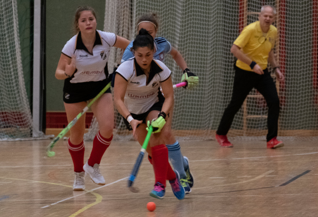 Keine Mühe haben die Damen von HDI WAC gegen NAVAX Universitas - 1:6 zur Halbzeit und 1:9 der Endstand. Bitter ist für den dünn besetzten WAC-Kader, dass sich Isabelle Klausbruckner in diesem Spiel eine gelb-rote Karte einfängt und damit im nächsten Spiel, gerade gegen den direkten Titel-Konkurrenten NAVAX AHTC, nicht auflaufen darf.