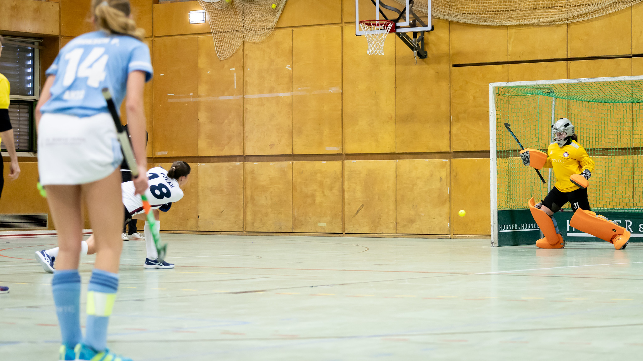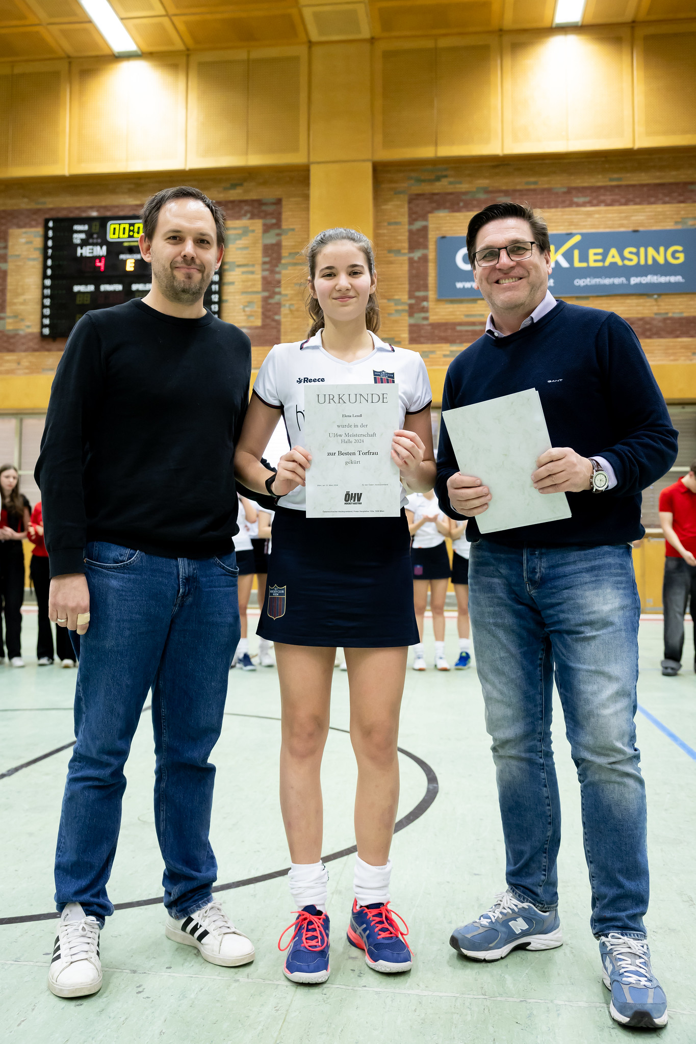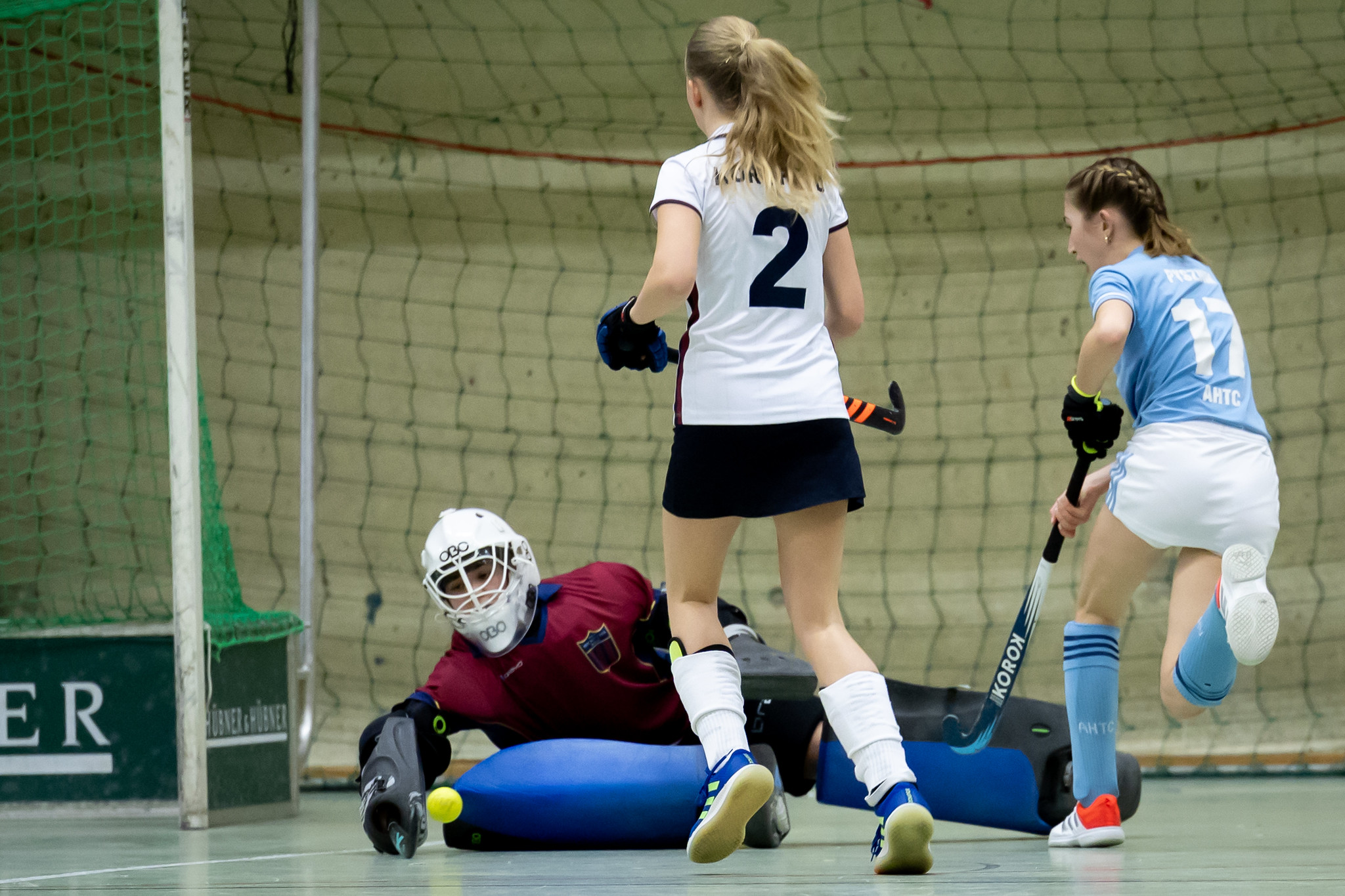 Im Gegensatz zum Burschen-Finale starten beide Mannschaften sehr offensiv. HC Wien kommt gleich nach den ersten beiden Spielminuten zu einer Riesenchance, aber der Ball kann nicht unter Kontrolle gebracht werden. Kurz danach dribbelt sich Karlotta Grosse durch die AHTC-Verteidigung und bringt den Ball auch noch im Tor unter.