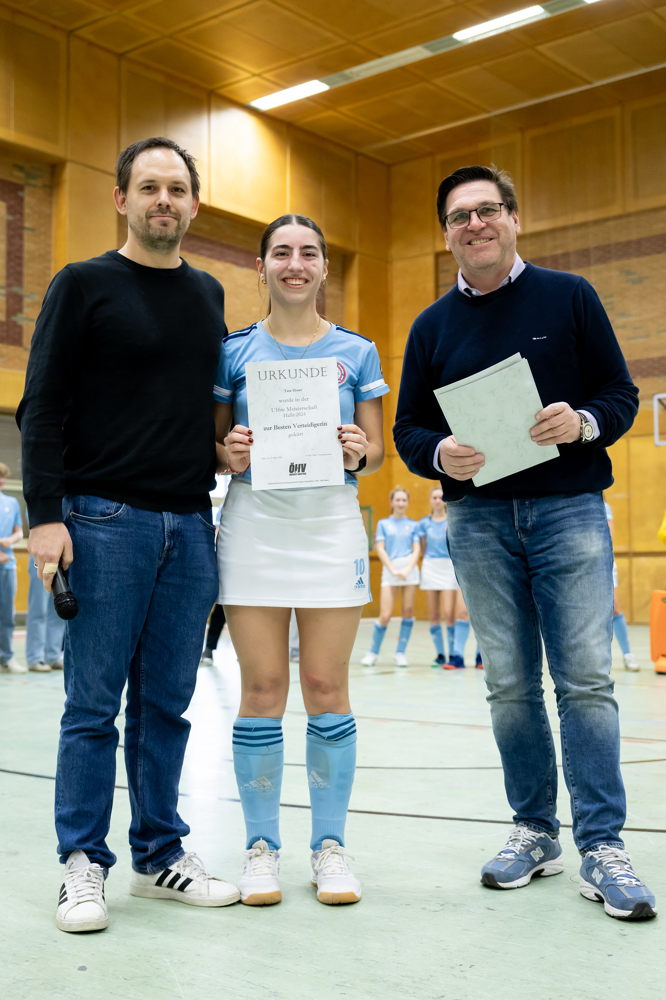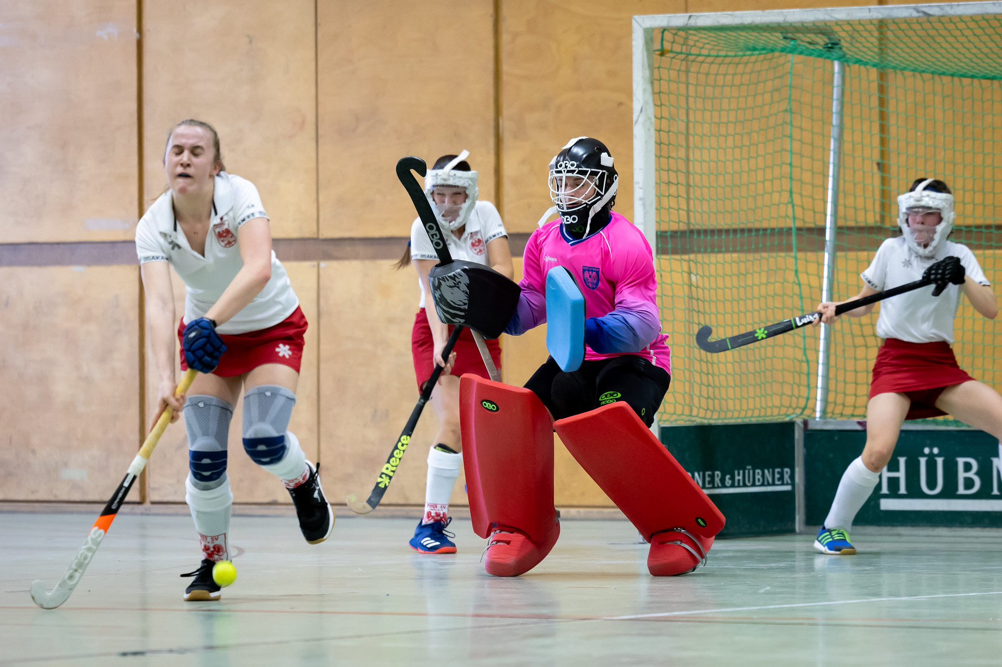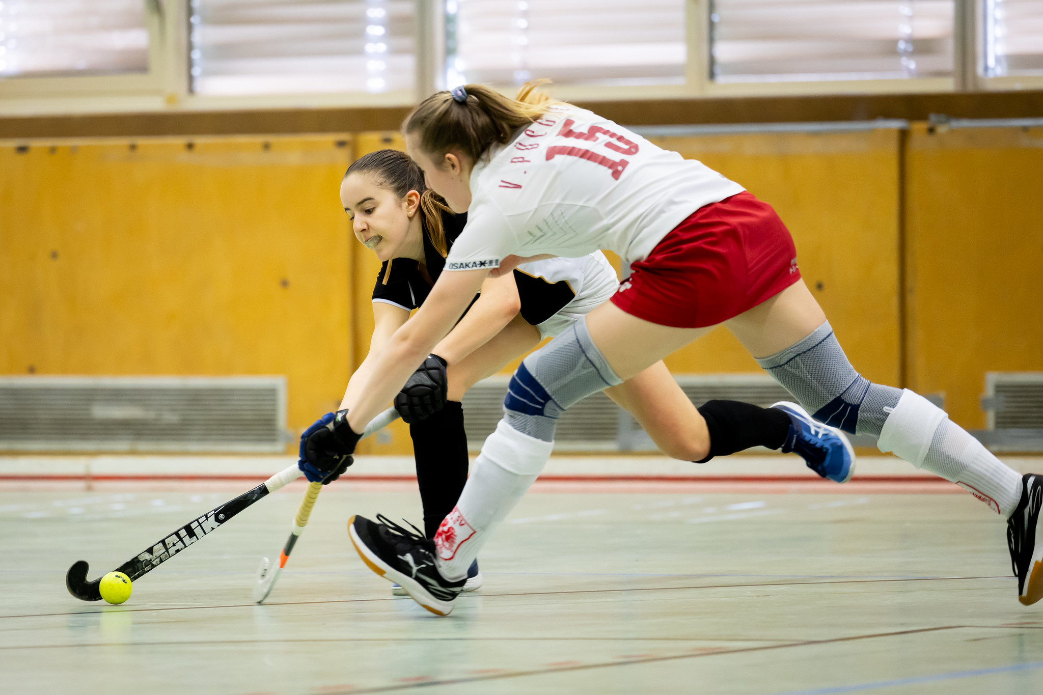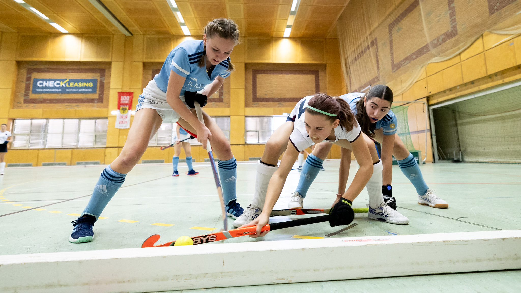 Im Gegensatz zum Burschen-Finale starten beide Mannschaften sehr offensiv. HC Wien kommt gleich nach den ersten beiden Spielminuten zu einer Riesenchance, aber der Ball kann nicht unter Kontrolle gebracht werden. Kurz danach dribbelt sich Karlotta Grosse durch die AHTC-Verteidigung und bringt den Ball auch noch im Tor unter.