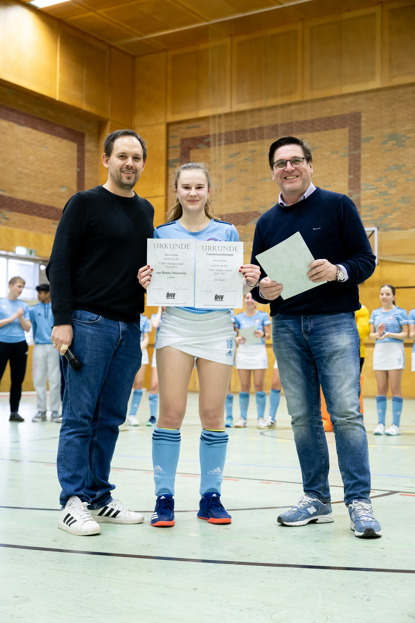 Hektisch wird das Ende des Spiels - es gibt zunächst eine grüne Karte für den AHTC-Betreuer, dann für ein Stockfoul gelbe Karte für AHTC und 7m für HC Wien. Helena Polak trifft und verkürzt auf 3:2. Aber AHTC kann noch einmal nachlegen - neuerlich erzielt Selma Kutzelnig das Tor für AHTC und damit endet das Spiel 4:2. AHTC ist österreichischer Meister und HC Wien freut sich letztendlich über Silber.