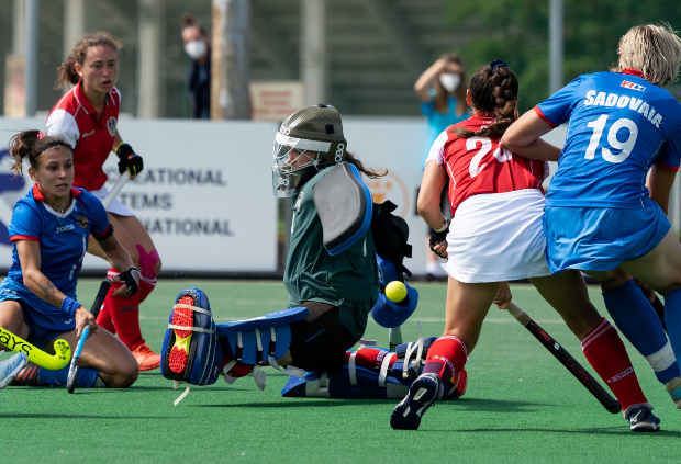 Auch im 2. Viertel ändert sich nichts am Gesamtbild. Vor allem Stella von Rahden, die sich einige Male im Tor der Red Foxes auszeichnen kann, ist es zu verdanken, dass das Ergebnis nicht höher ausfällt. In der 26. Minute erzielt Russland aus einer Strafecke dennoch das 2:0.
