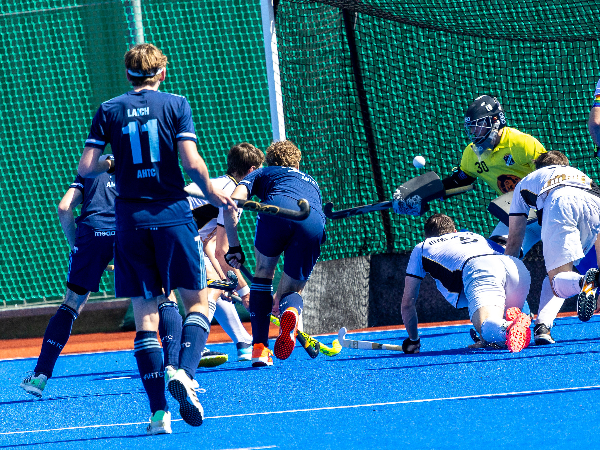 Eine sehr effiziente Spielweise und ein hervorragend eingestellter Laurenzo Rizzi im Tor bringen die Herren von AHTC auf die Siegerstraße. Dabei führt SV Arminen nach dem ersten Viertel bereits mit 2:0 - die Tore fallen im Zuge von Strafecken. AHTC gelingt noch im 2. Viertel der Anschlusstreffer zum 1:2.