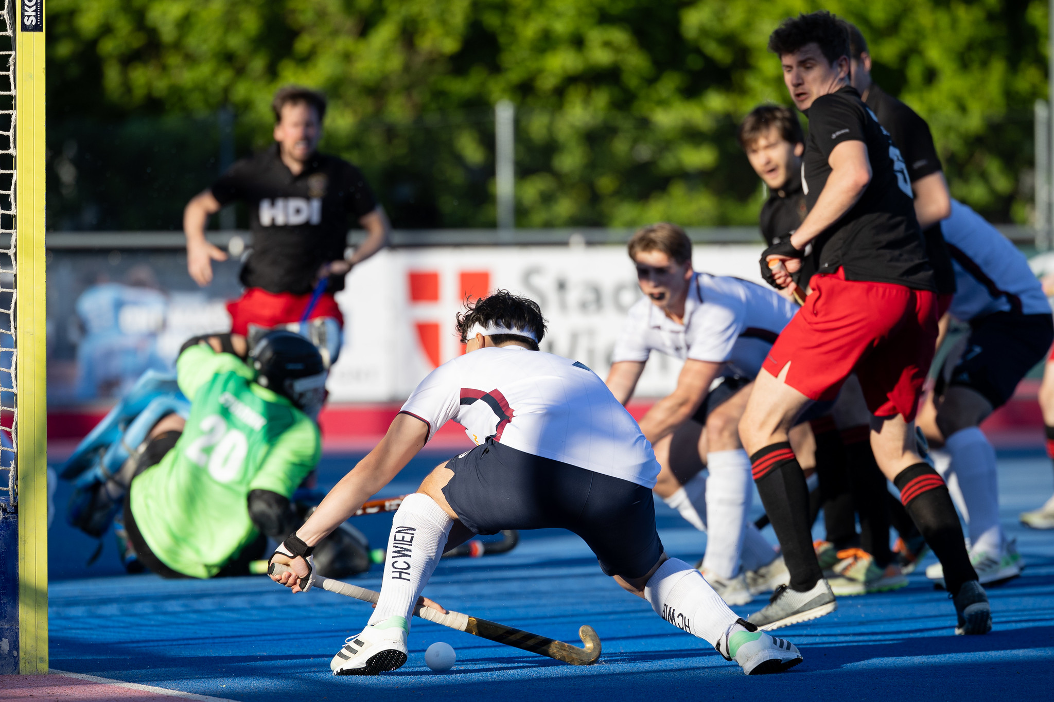 Das dritte Viertel wird dominiert von Standards - alle 4 Tore in diesem Viertel fallen aus Strafecken. Drei Tore von Maximilian Scholz und zwei Tore von Erik Schiesser führen letztendlich zu einem Spielstand von 4:3 für Post SV. Damit geht es in das letzte Viertel und da legt Erik Schiesser neuerlich eine verwandelte Strafecke nach und erzielt den 4:4-Ausgleich.