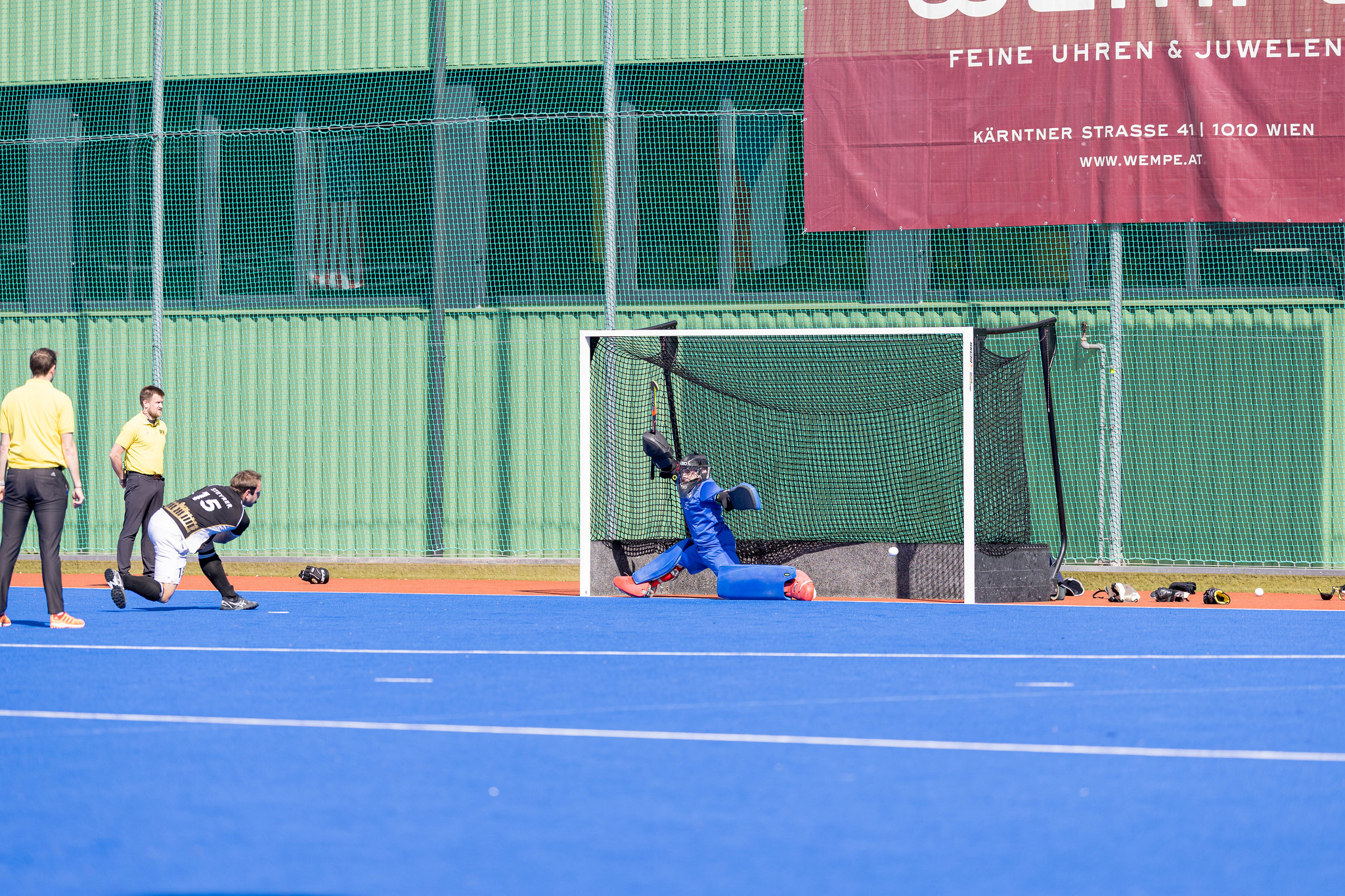 Im letzten Viertel gelingt Florian Steyrer eine gut ausgeführte Strafecke - Benjamin Stanzl kann den Ball nur mehr mit dem Körper auf der Linie abwehren. Dafür gibt es 7m und diesen verwandelt Florian Steyrer flach und scharf in die rechte Ecke. Damit führt SV Arminen 3:2.