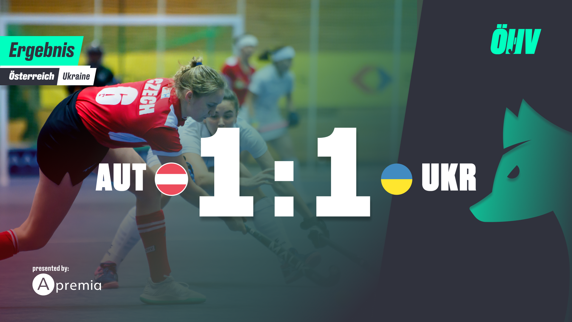 33 Minuten gespielt und zunächst noch etwas Glück für die Red Foxes. Ein Schuss knapp vorbei, ein Stecher 3m vor dem Tor genau auf Stella van Rahden, aber dann gelingt der Ukraine der Ausgleich zum 1:1 in der 35. Minute.