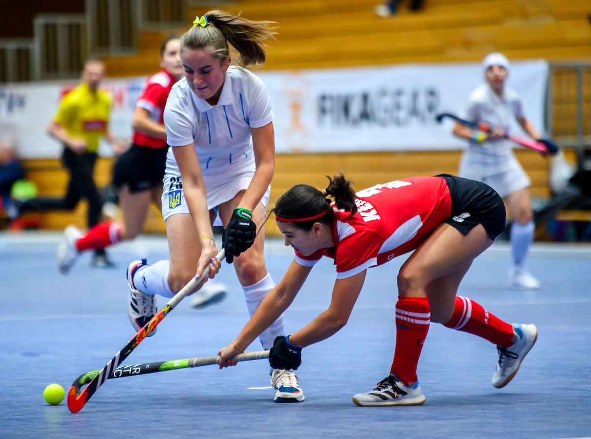 Österreich mit dem Anstoß in Ballbesitz, die Ukraine antwortet sofort mit einem druckvollen Spiel, aber die Red Foxes lassen sich davon nicht beirren. Sie kommen nach 4 Minuten Spielzeit zu den ersten Chancen und erspielen sich theoretisch eine Strafecke durch ein gegnerisches Fuß, das aber der Unpateiische nicht sieht.