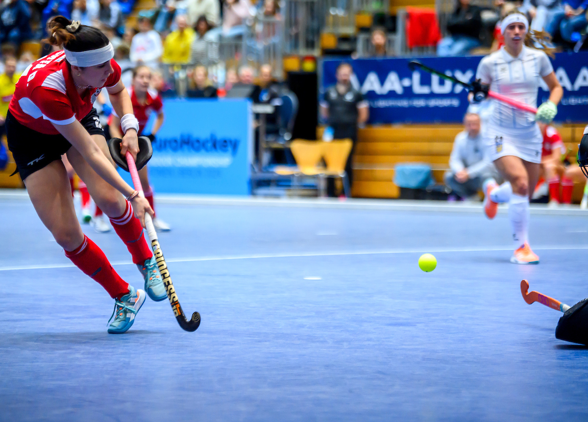 Die Red Foxes wirken kurzzeitig sehr ungeordnet und gleich darauf gibt es auch noch Strafecke für die Ukraine. Der Ball kann auf der Linie abgewehrt werden. Das Spiel wirkt jetzt zerfahren, es passieren zu viele Eigenfehler, der Ball geht im eigenen Ballbesitz zu schnell verloren.