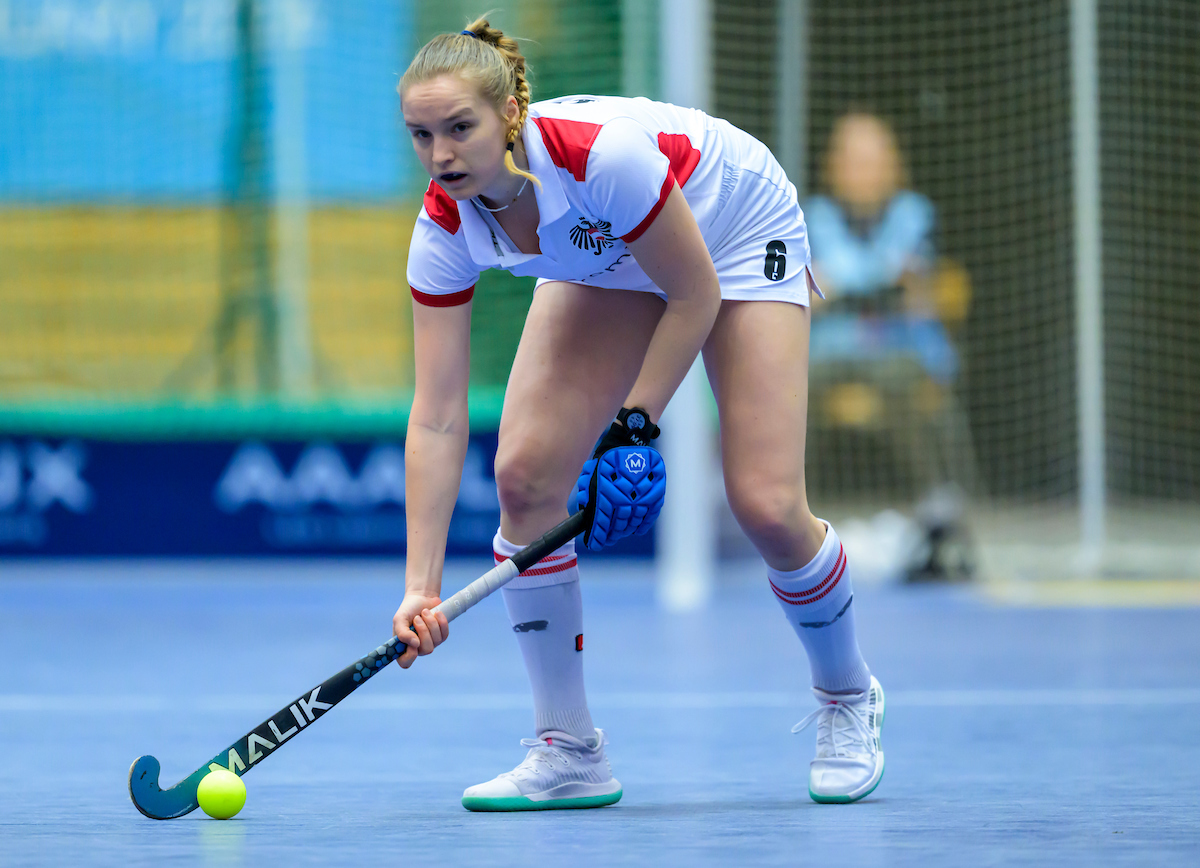 Fiona Felber ist schwer vom Ball zu trennen und sie erarbeitet sich die erste Strafecke, schießt selbst und holt einen 7 Meter für Österreich. Laura Kern tritt an, schlenzt aber den Ball zu zentral auf das Tor und dieser wird gehalten.