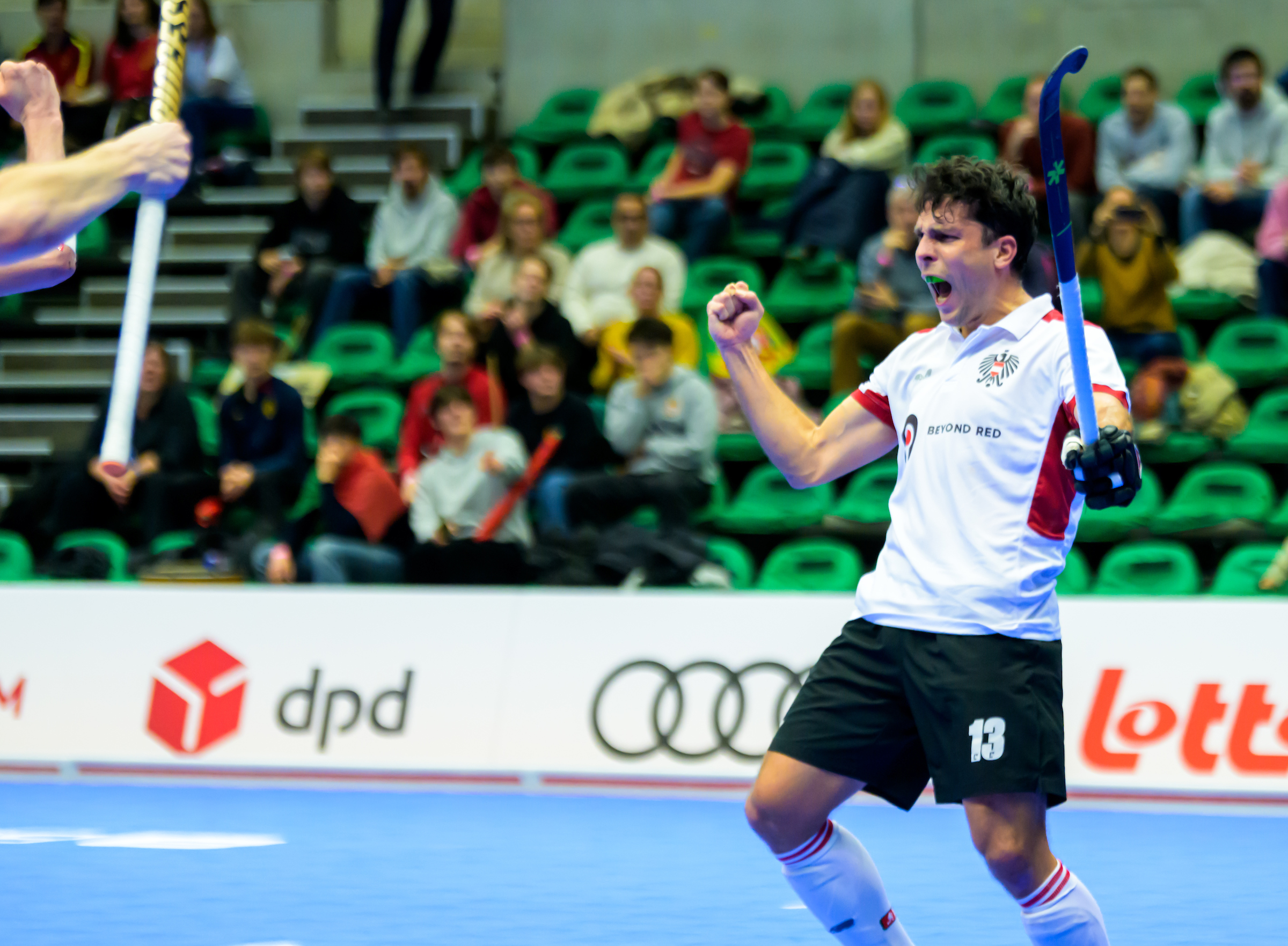 In der 27. Minute gerät Österreich für eine Minute in Unterzahl und kassiert zusätzlich eine Strafecke. Die Schweiz versucht eine neue Variante, aber Torhüter Mateusz Szymczyk erkennt diese früh und ist einmal mehr der gewohnt starke Rückhalt für die österreichische Mannschaft.