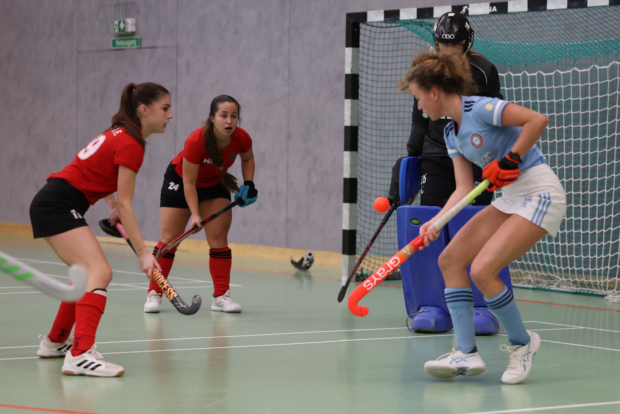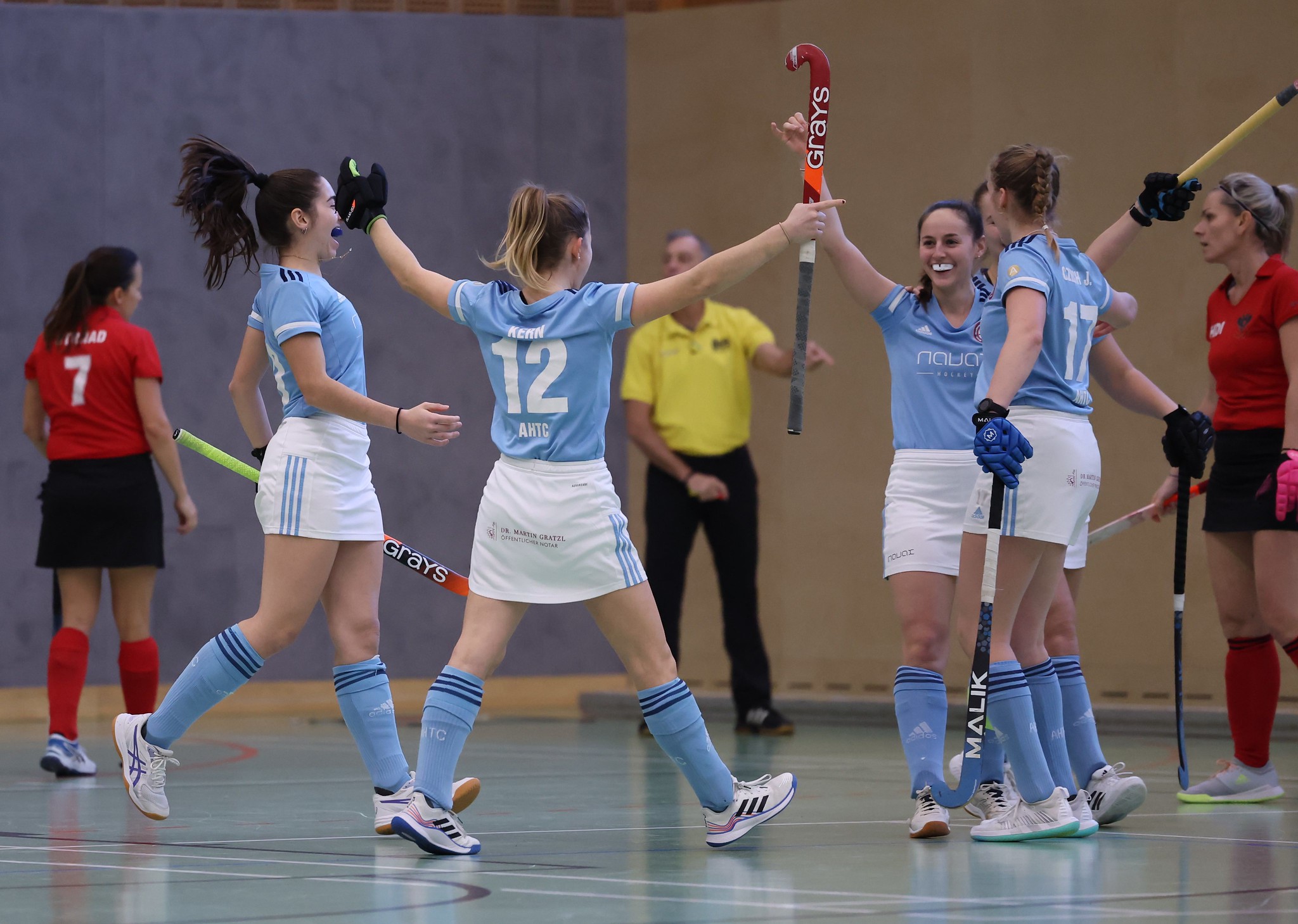 Bei den Damen wird heute nur ein Spiel ausgetragen. Prater hat nur 2 Tauschspieler auf der Bank und findet vor allem in der ersten Halbzeit überhaupt nicht in das Spiel. Es fehlt die Abstimmung in der Mannschaft und auch die richtige Einstellung. AHTC schießt die Tore nach Belieben und führt bis zum Seitenwechsel bereits mit 8 Toren Vorsprung.