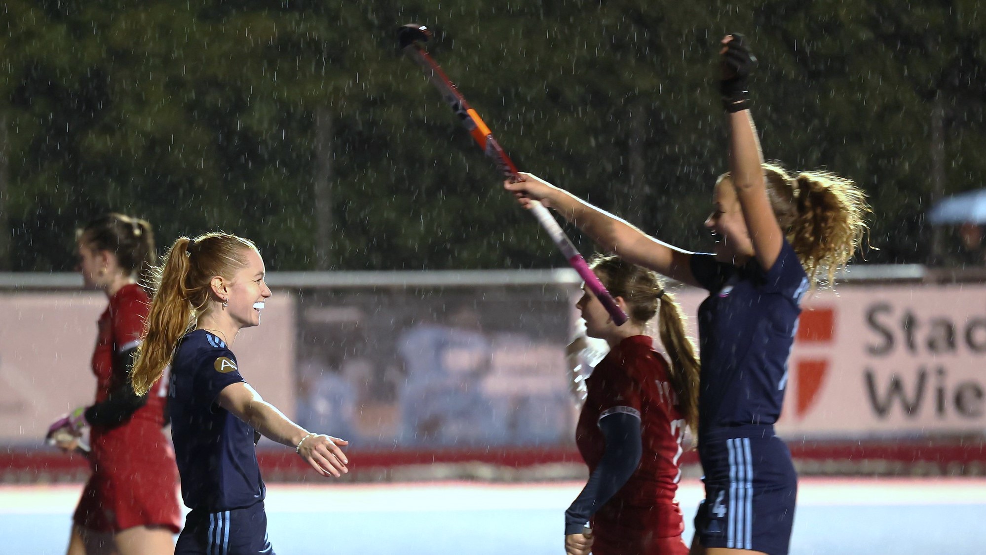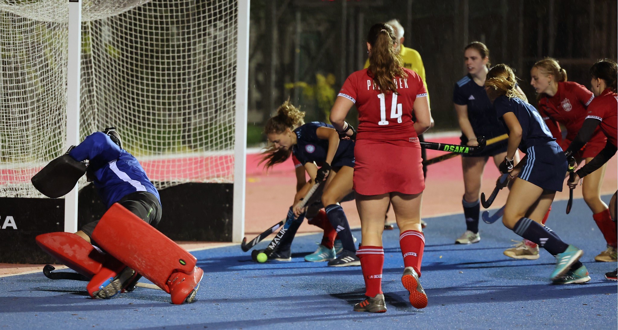 Vom nassen Wetter ließen sich die Damen von AHTC ihre Spielfreude heute nicht verderben. Der Ball läuft, das Zusammenspiel klappt gut und die Tore fallen am laufenden Band - so viele, dass der AHTC-Coach nach dem Spiel keine genaue Übersicht mehr hat - Maria-Luisa Esser (4), Anja Haselsteiner (2), Antonia Hermanns, Helene Herzog, Laura Kern (2), Malwina Pysznik und Tessa von Velsen stehen am Ende auf der Torschützenliste.