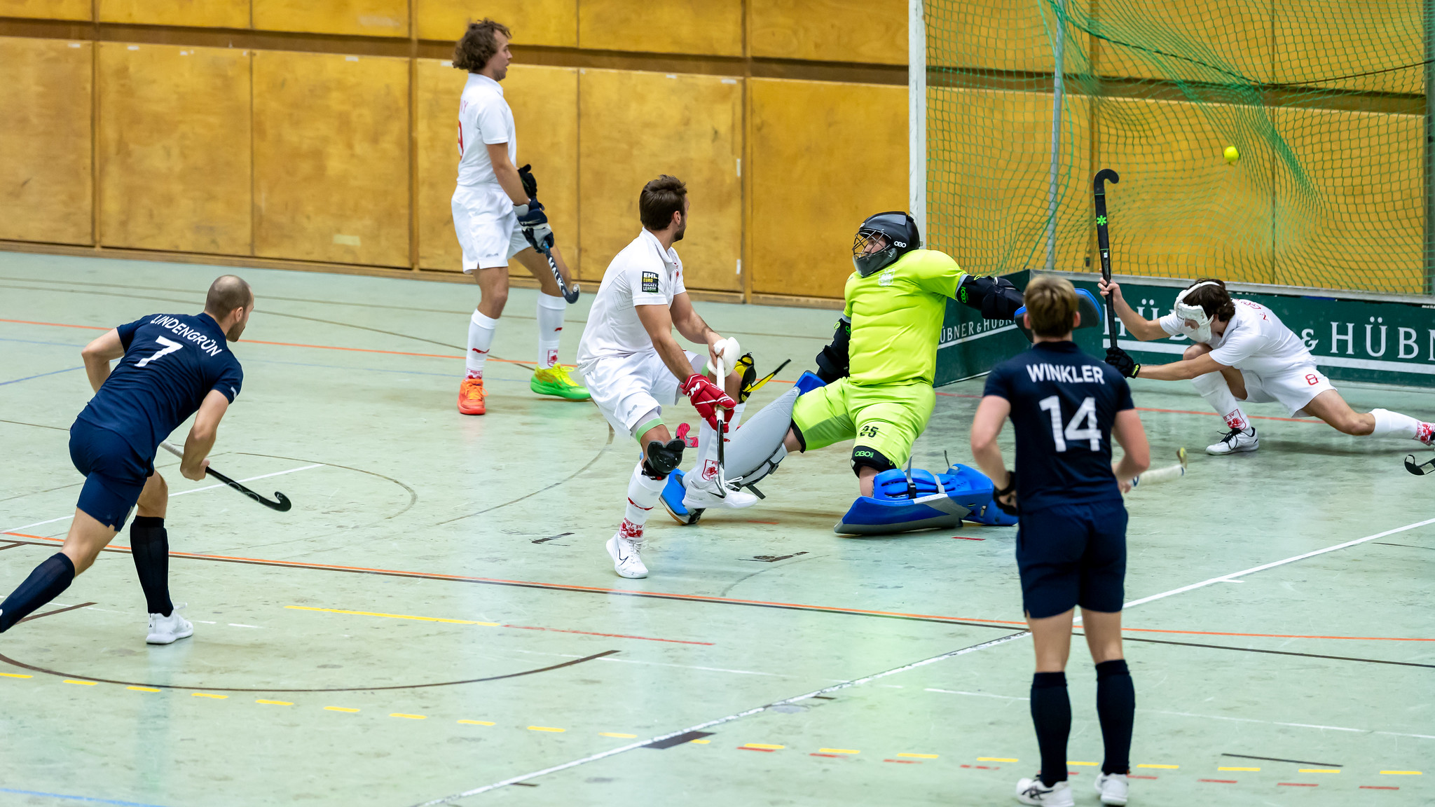 Weniger als eine Minute auf der Uhr, Maximilian Kelner kommt rechts durch und spielt den Ball Sebastian Eitenberger genau in den Schläger - im Fallen erzielt er das 5:5. Sekunden vor Schluss hat Tobias Mayer noch die letzte Chance am Schläger, aber der auf das Feld zurückgekehrte Arminen-Goalie hält.