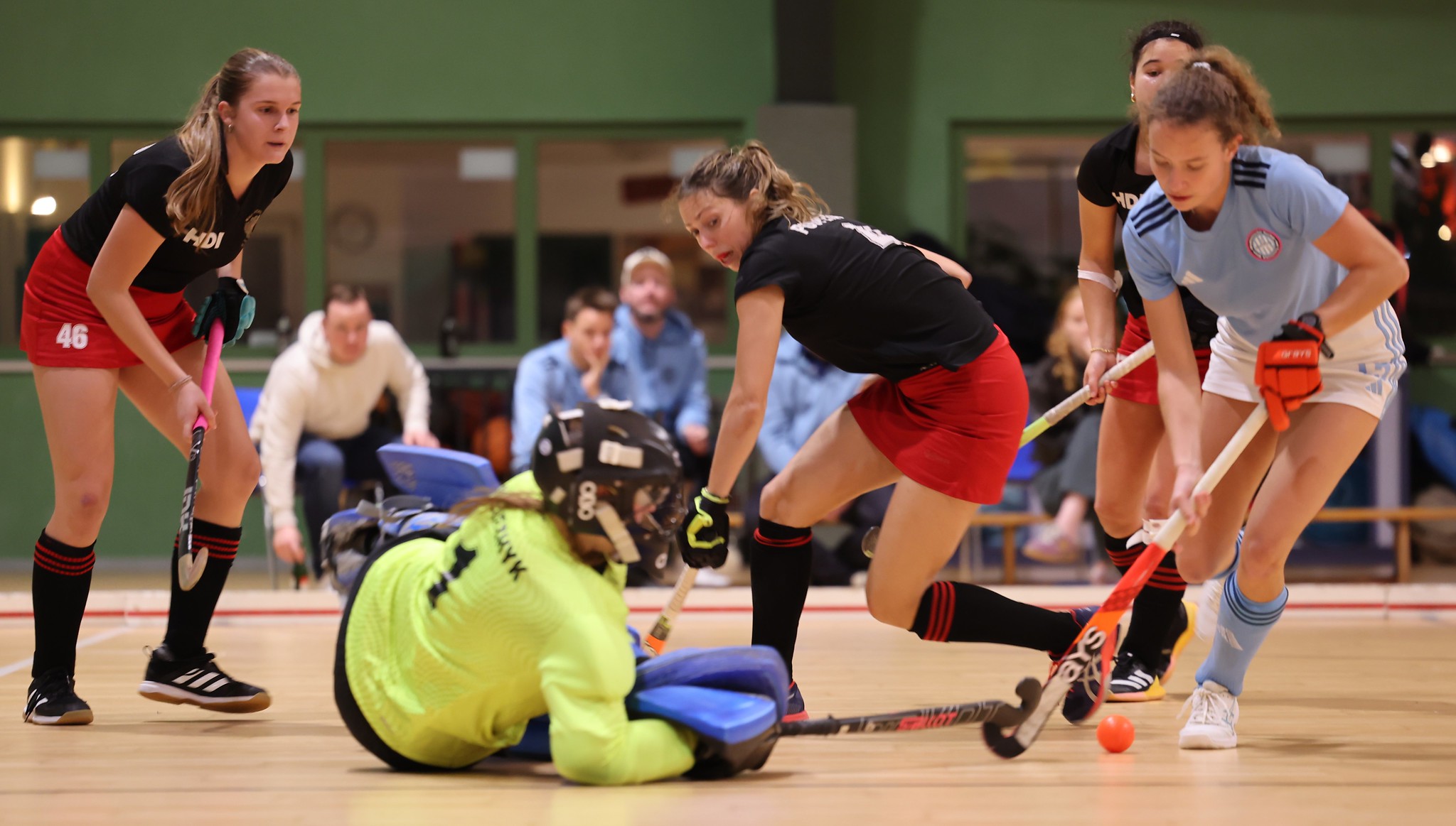In einer gut besuchten Post-Halle dauert es fast 20 Minuten bis das erste Tor fällt und das machen die SV Arminen per Strafecke. Der erste Schuss von Patrick Schmidt wird durch Post-Goalie Jakob Kastner abgewehrt, doch der Ball springt direkt nach rechts zu Jonas Fischer. Der findet die schmale Lücke zwischen Grundlinie, den Schlägern der Verteidiger und dem Tormann und bringt den Ball in die Mitte. Alexander Bele sagt Danke und scort zum 0:1.