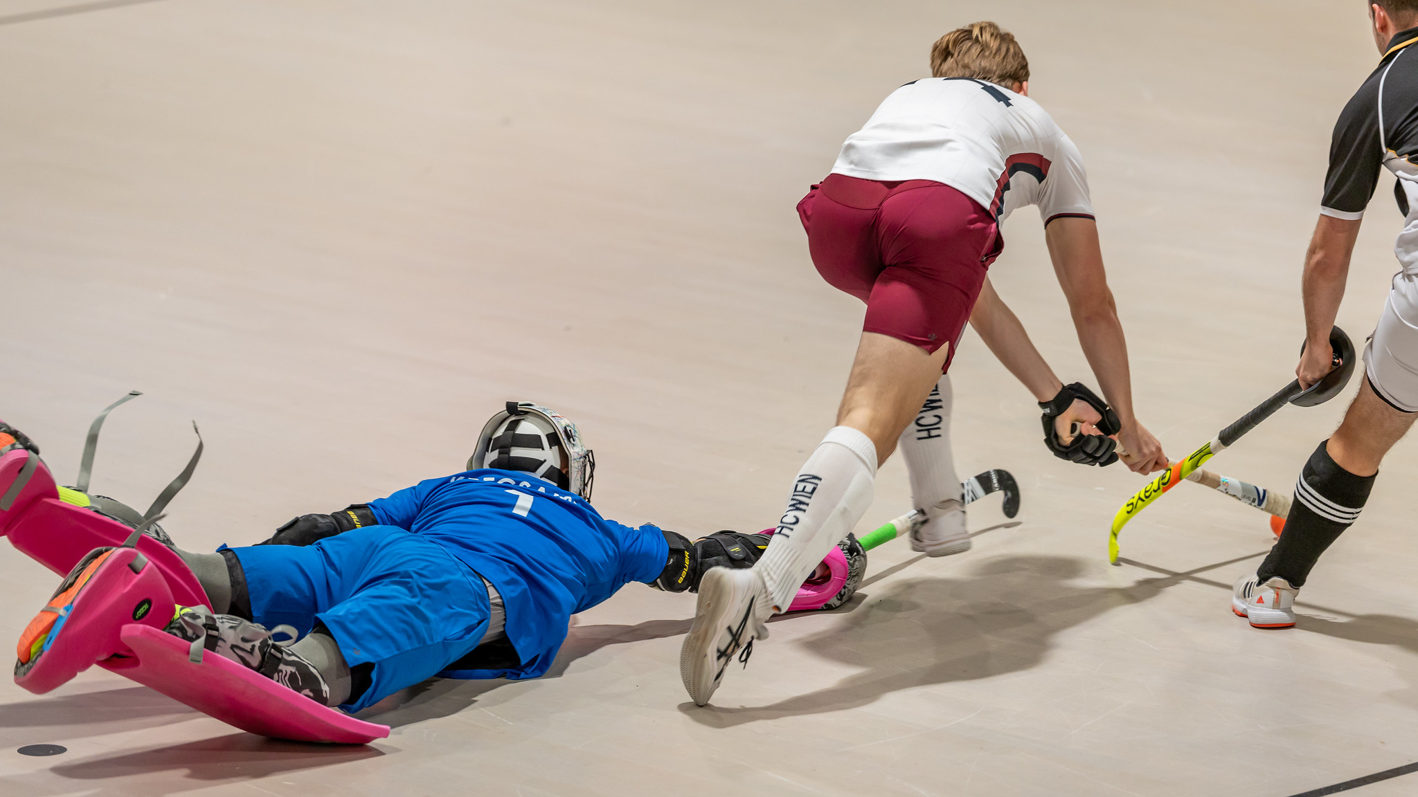 Die erste Ecke im letzten Abschnitt bringt das 9:7 für SV Arminen mit einem perfekt ausgeführten Direktschlenzer von Michael Minar. Anstoß von HC Wien, schlechte Attacke an der rechten Bande und HC Wien setzt sich durch und stellt auf 8:9 - noch neun Minuten zu spielen.