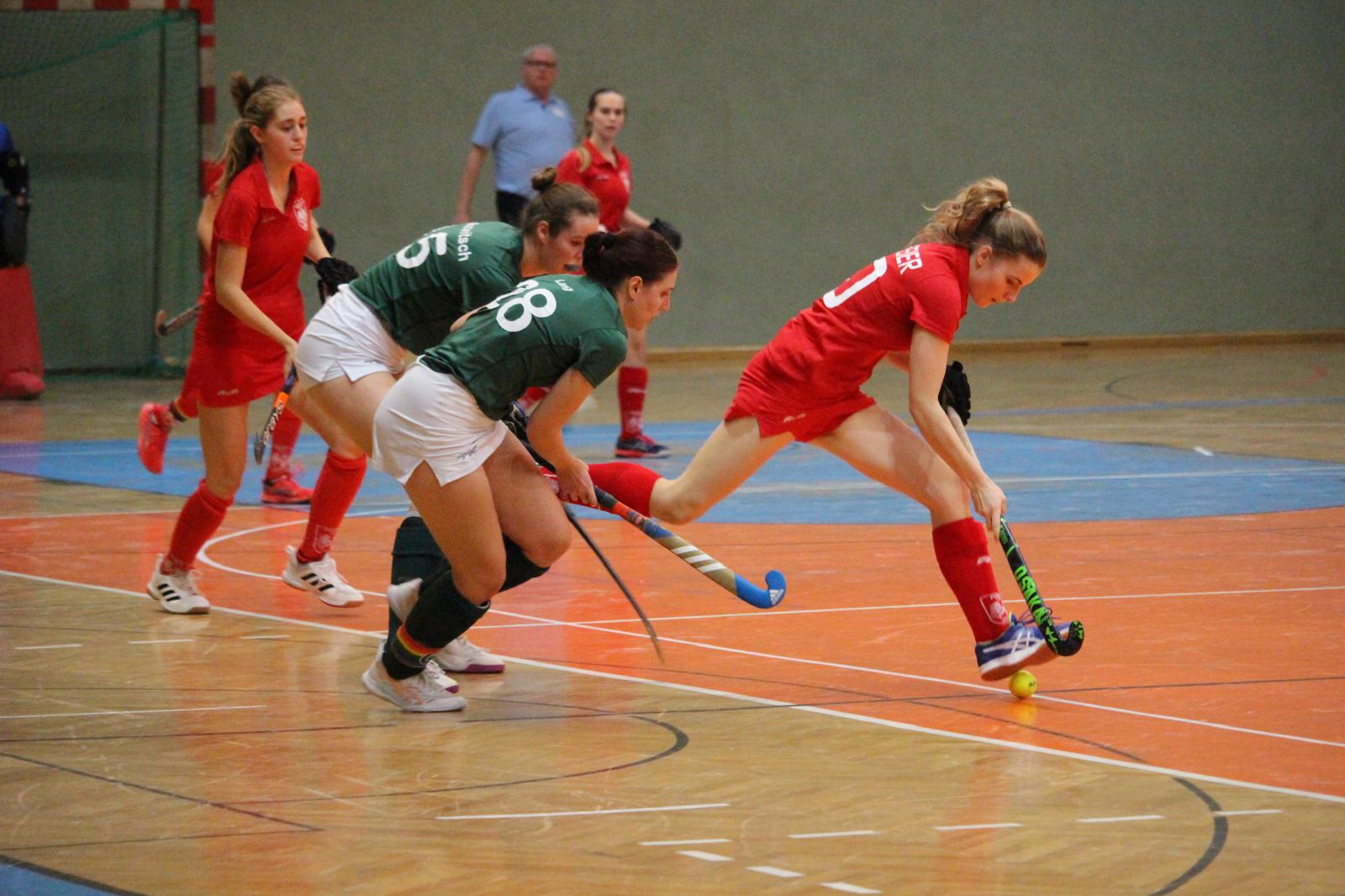 Das erste Viertel verläuft noch relativ ausgeglichen, obwohl Post SV mehr Chancen verbuchen kann. Ein 7m von Liv Heindl landet an der Stange, aber die erste Strafecke führt zum 0:1. Mehr Möglichkeiten können nicht genutzt werden.