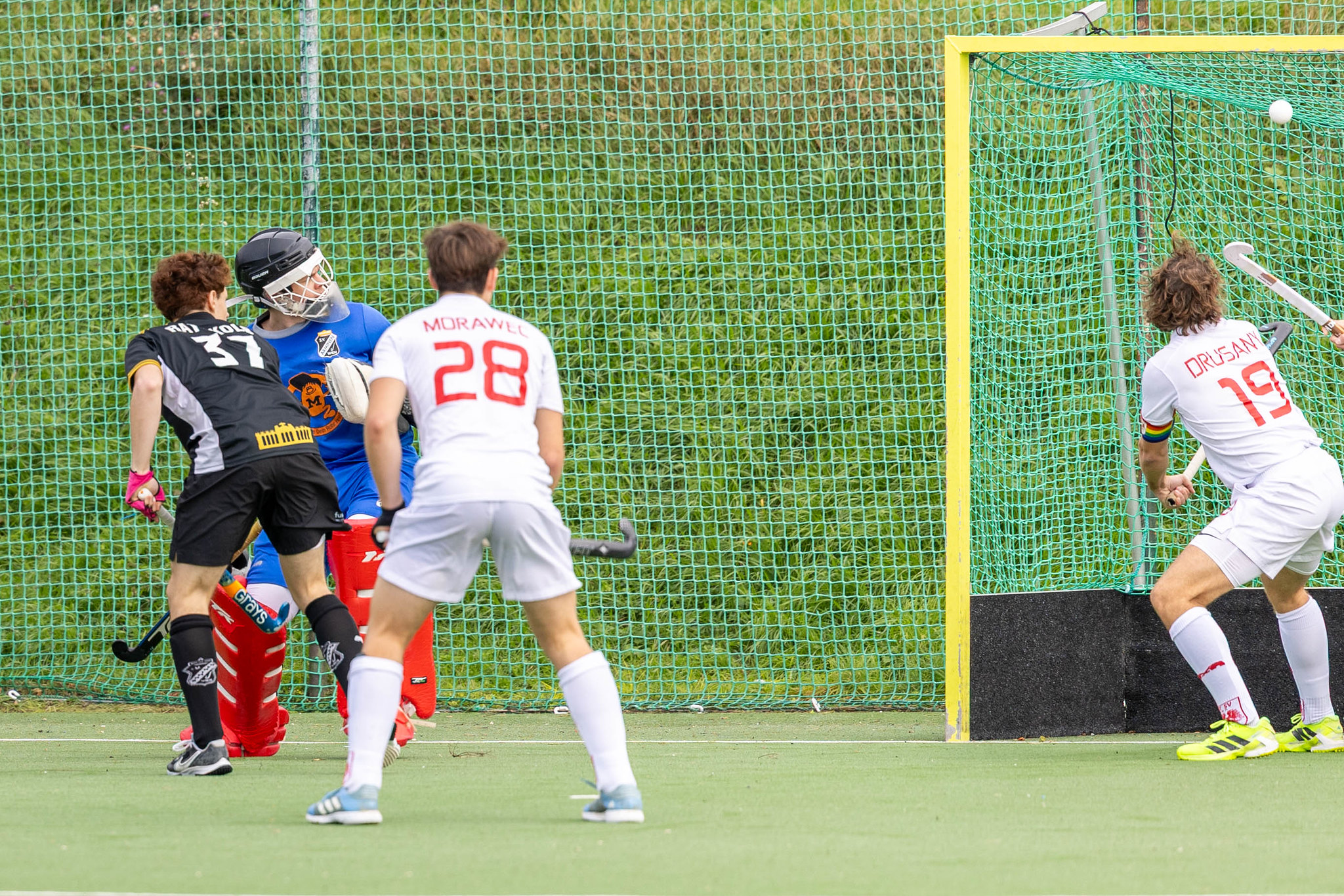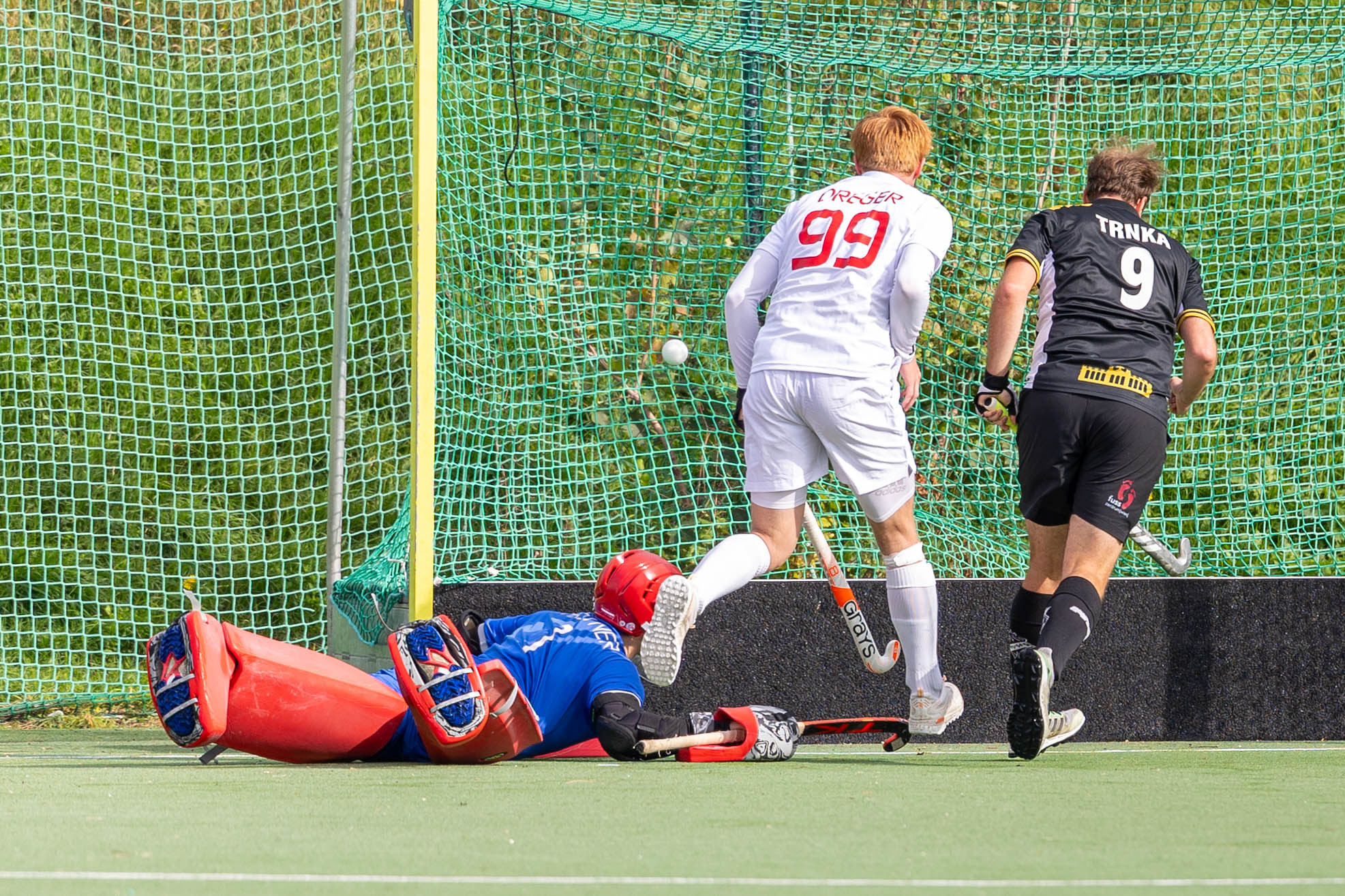 Die Freude über die Führung ist nur von kurzer Dauer. Zwei Post-Verteidiger behindern sich im eignen Kreis gegenseitig und sperren damit den gegnerischen Spieler. Es gibt Strafecke und Maximilian Kelner nützt diese Chance für den Ausgleich. 1:1.