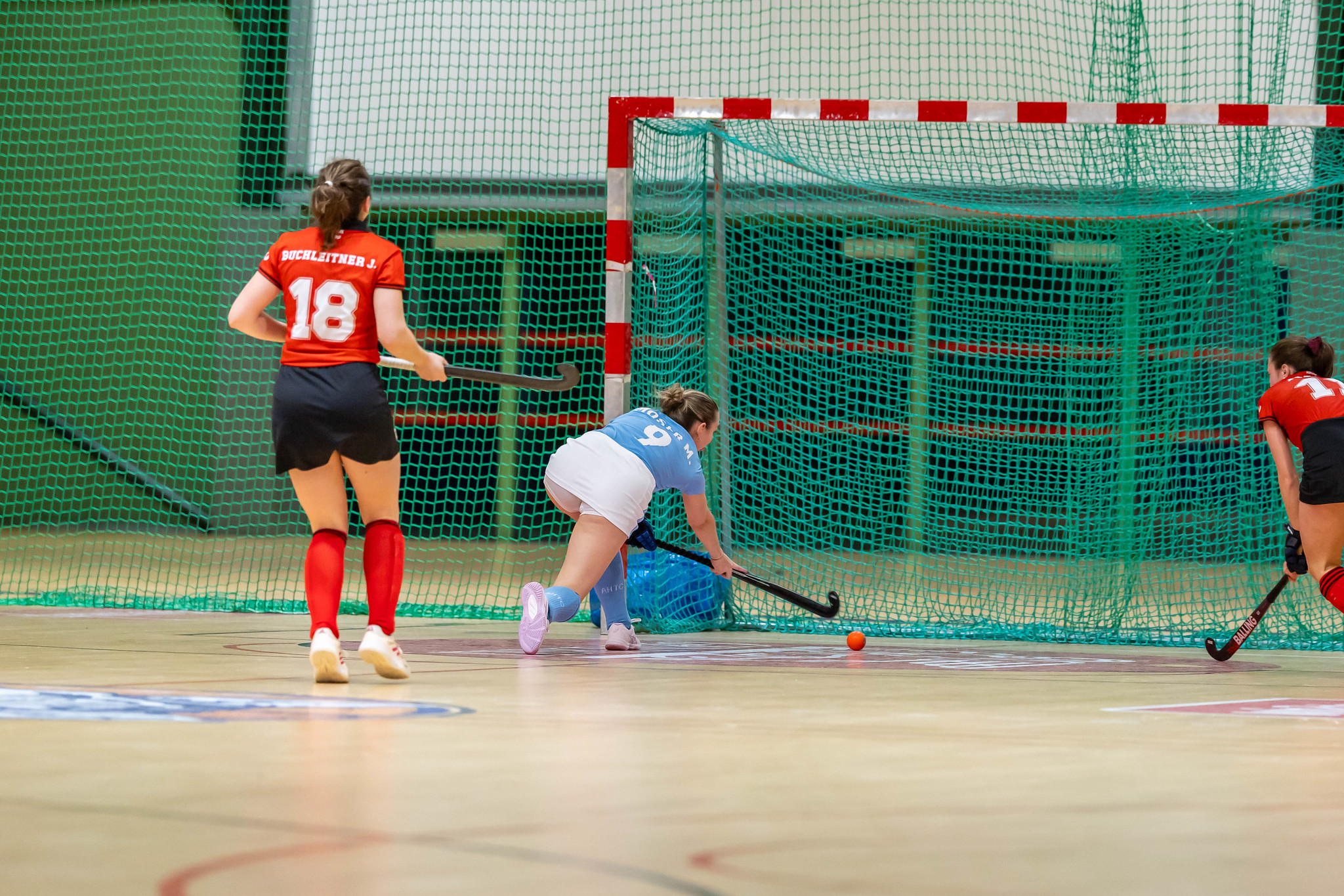 Schnelle Führung von SV Arminen: Durga Galhaup bringt den Ball aus einem eigentlich nahezu unmöglichen Winkel auf das Tor und das ist das 1:0 für die Gastmannschaft. Eine Strafecke beschert SV Arminen das 2:0 - Kristine Vukovich befördert den Ball in die Kreuzecke.