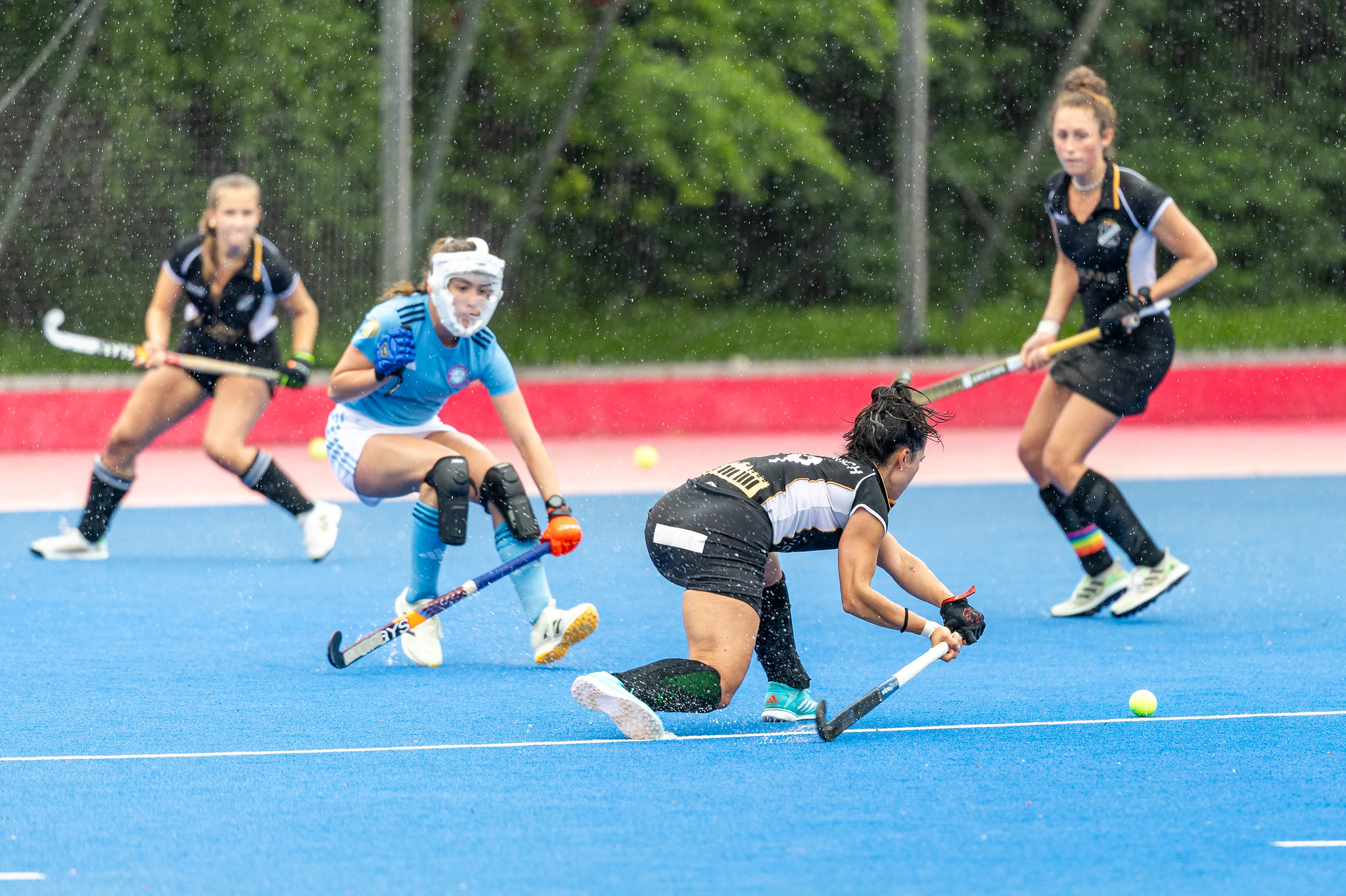 AHTC gelingt ein etwas holpriger Start und es ist auch nur das erste Viertel in dem SV Arminen die Spannung halten kann. Griffige Zweikämpfe zeichnen das Spiel zu Beginn aus, aber daraus resultieren nur wenige Kreiseintritte für die Schwarz-Weißen. Der heftige Regen macht den Platz tief und langsam.