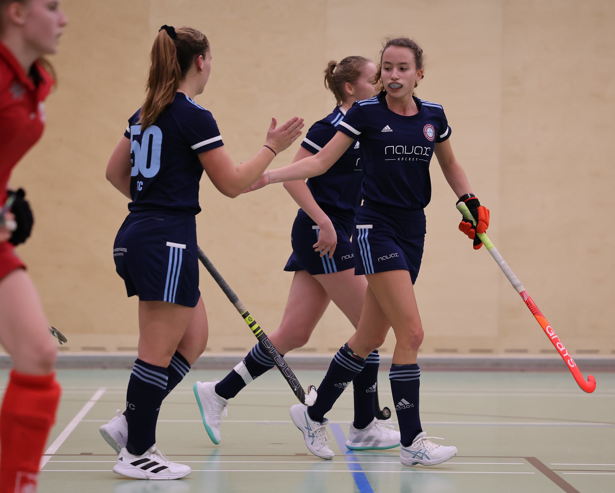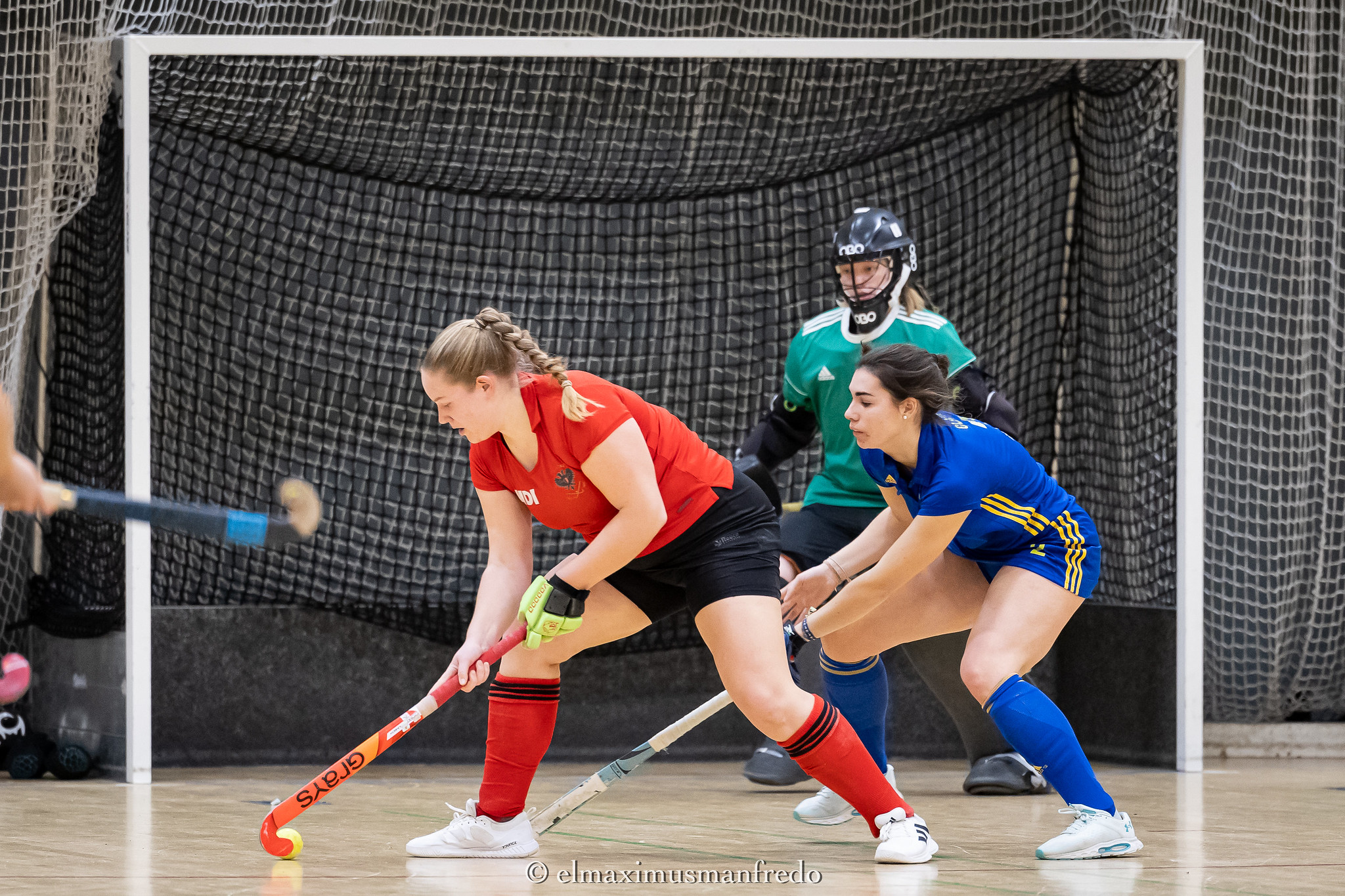 Maxine Collien trifft 2x aus Strafecken, die restlichen vier Tore fallen aus dem Spiel - Anna Hackl (2), Marie Pelz und Kristine Vukovich tragen sich in die Torschützenliste ein. Zur Halbzeit steht es 0:3.