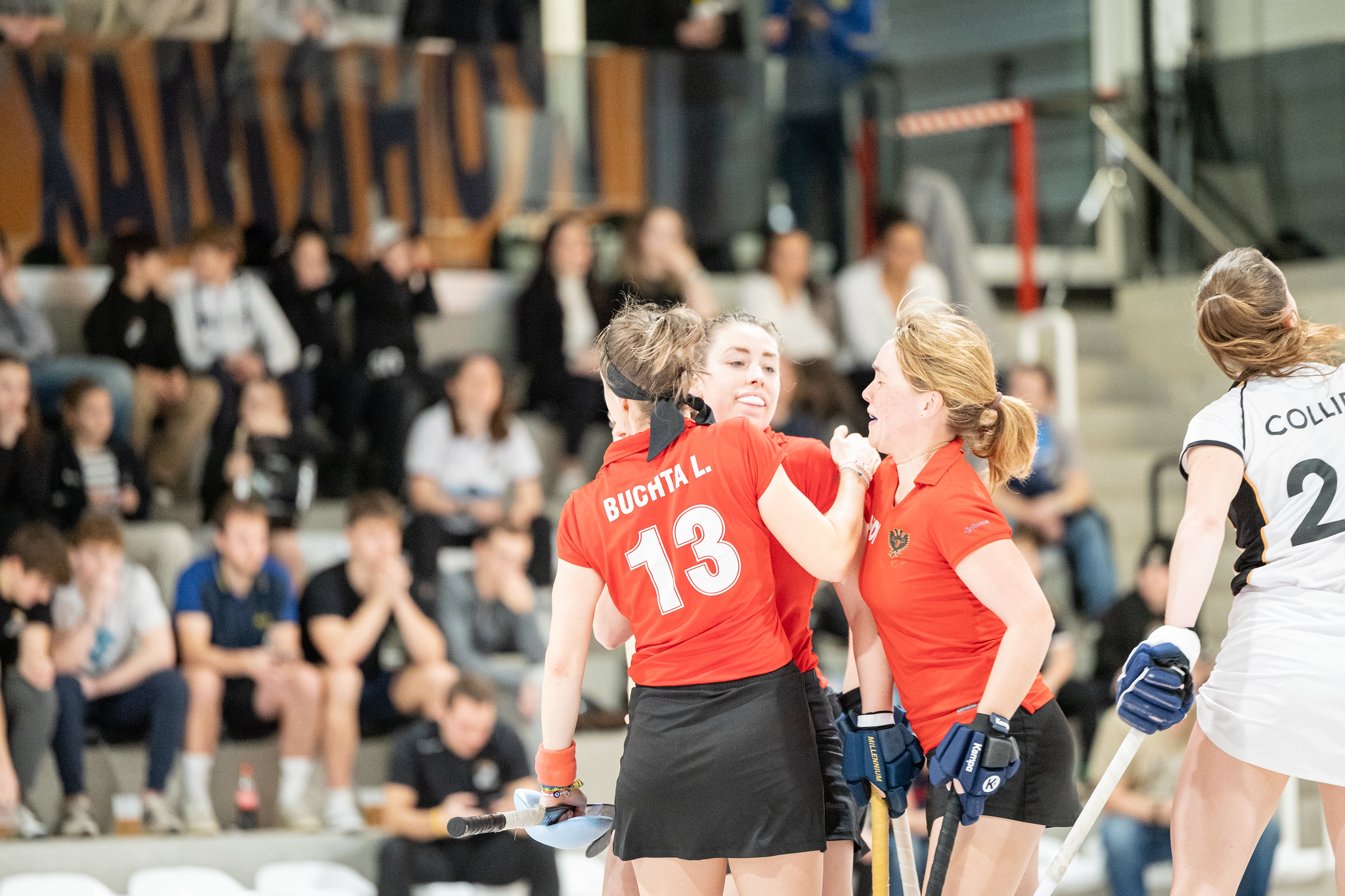 Die nächste Strafecke für HDI-WAC wird mutig abgelaufen. Maxine mutiert heute zur gefährlichsten Spielerin am Feld - nächste Aktion: zuerst Stangenschuss, der Ball kommt zu Collien und mit der Rückhand befördert sie den Ball zum 3:2 (31') in das Tor.