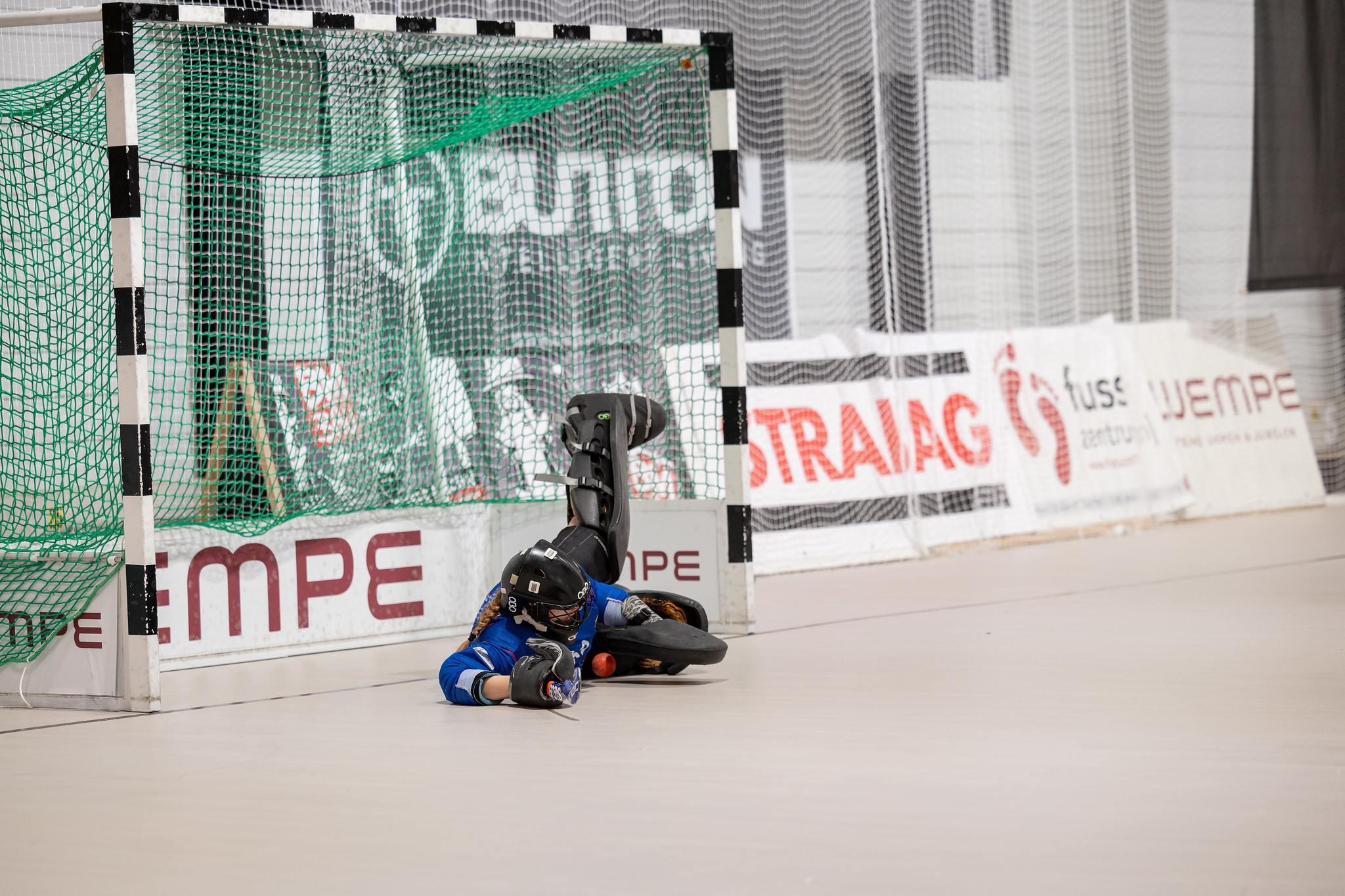 Kaum 40 Sekunden gespielt und Marianne Pultar kommt an der linken Bande durch, zieht entlang der Grundlinie Richtung Tor und bringt mit letzter Kraft den Ball an der Torfrau vorbei. Das ist die Führung für die Neudorfer Damen.