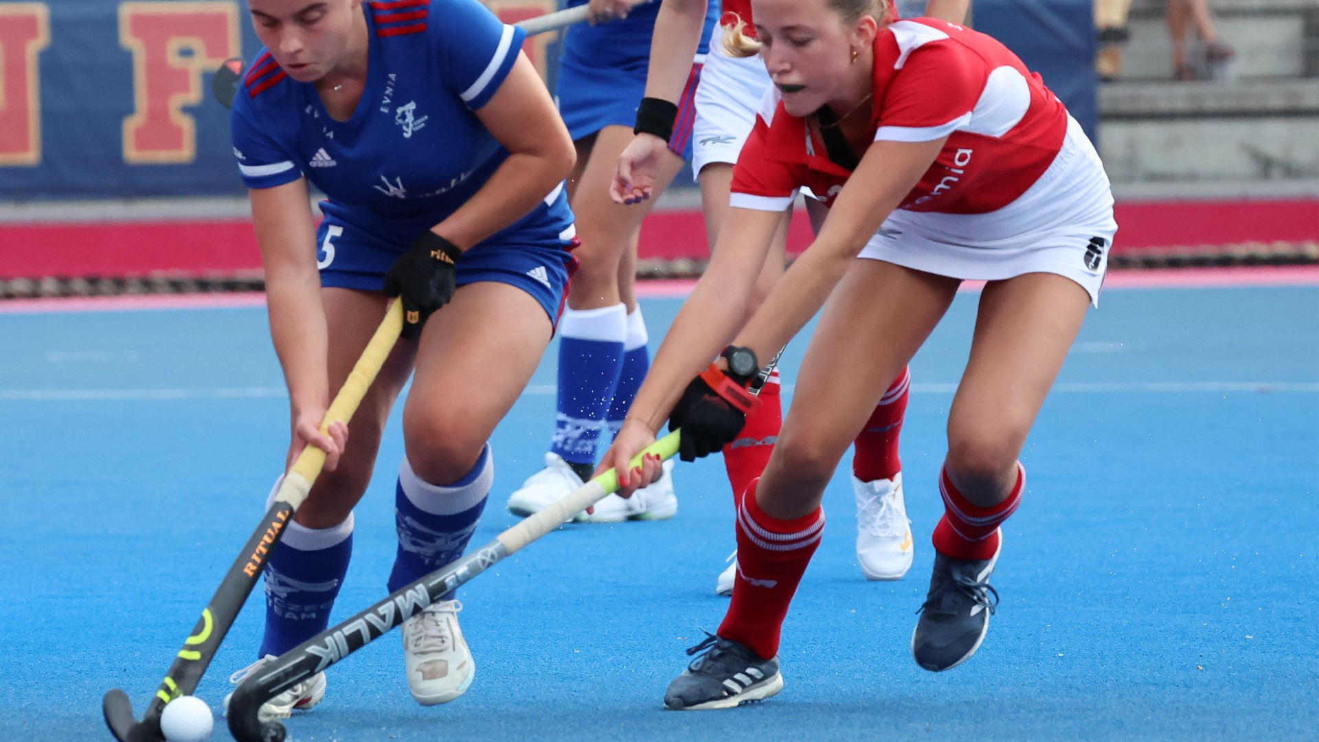 In der 41. Minute kommt eine tschechische Spielerin relativ unbedrängt über die rechte Seite in den Kreis und ihr Schuss geht über das Brett in das Netz. Damit steht es 1:0 für Tschechien.