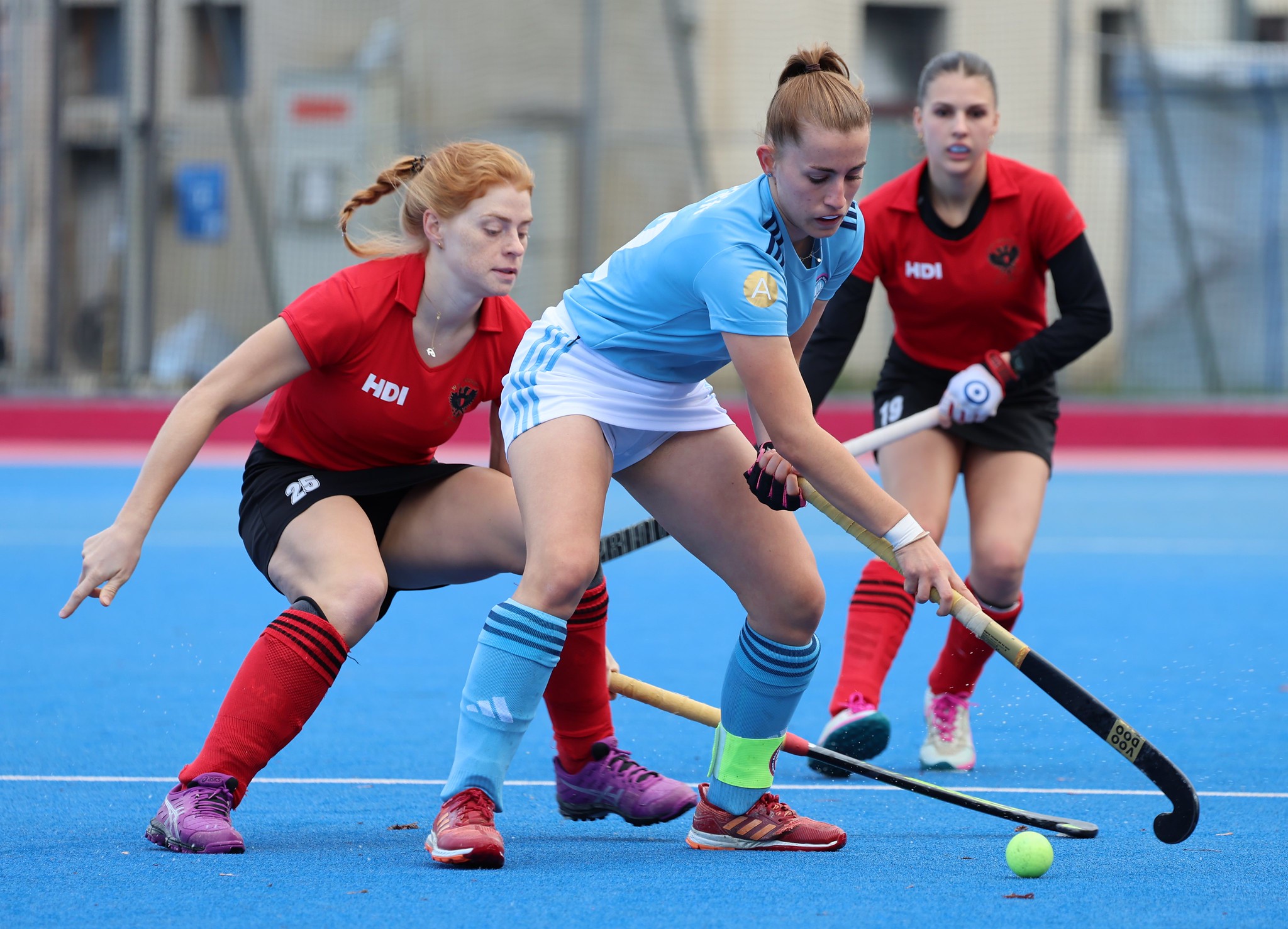 Die deutsche Stürmerin Tessa von Velsen ist heute maßgeblich daran beteiligt, dass die AHTC-Damen einen klaren Sieg erringen. Sie schießt alle vier Tore des Meisters und fügt sich sichtlich schnell in die Mannschaft ein.