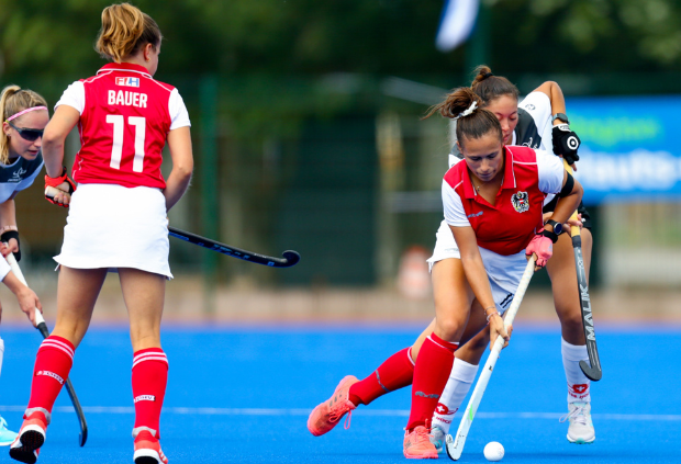 Österreichs Damen starten wie gewünscht in das Spiel - griffig und mit Selbstvertrauen. In der 9. Minute kommt Miriam Gerö in der Verteidigung an den Ball, hat viel Platz ohne gegnerische Bedrängnis und geht und schaut und geht und schaut - kurz vor der Viertellinie ein idealer Pass auf die im Schusskreis völlig freistehende Katharina Proksch. Die übernimmt den scharfen Ball direkt und es steht 1:0 für Österreich im 1. Viertel.