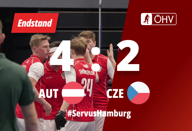 Tschechien kann aus der Überzahl (Michael Körper mit gelber Karte aus dem Spiel) keinen Nutzen ziehen. Noch zwei Minuten bleiben in diesem Spiel. Nochmals gelb wegen "Drilling" für Eitenberger. Den Rest des Spiels nur 4 Feldspieler auf Seiten der Österreicher. Noch 42 Sekunden und Strafecke für Tschechien. Diese wird verstoppt.
