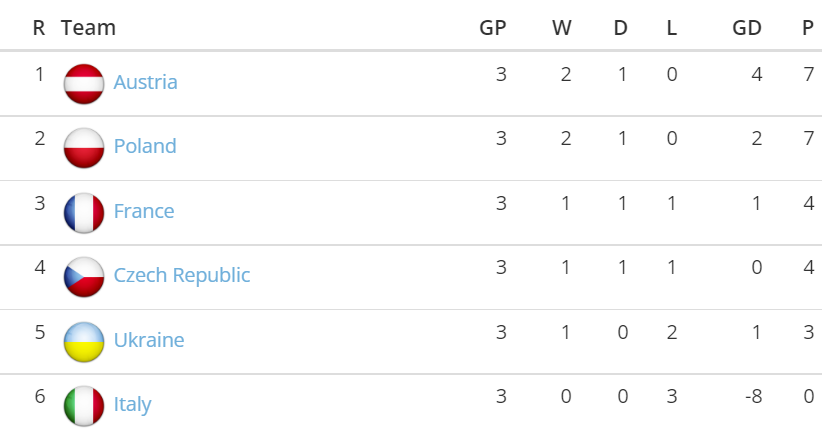 Mit dem 0:7 muss Österreich in der Folge im C-Pool spielen - das Spiel gegen Frankreich und der eine Punkt aus dem Unentschieden werden in den Pool C mitgenommen. Die Gegner aus der anderen Gruppe in Pool C sind Schottland und England.