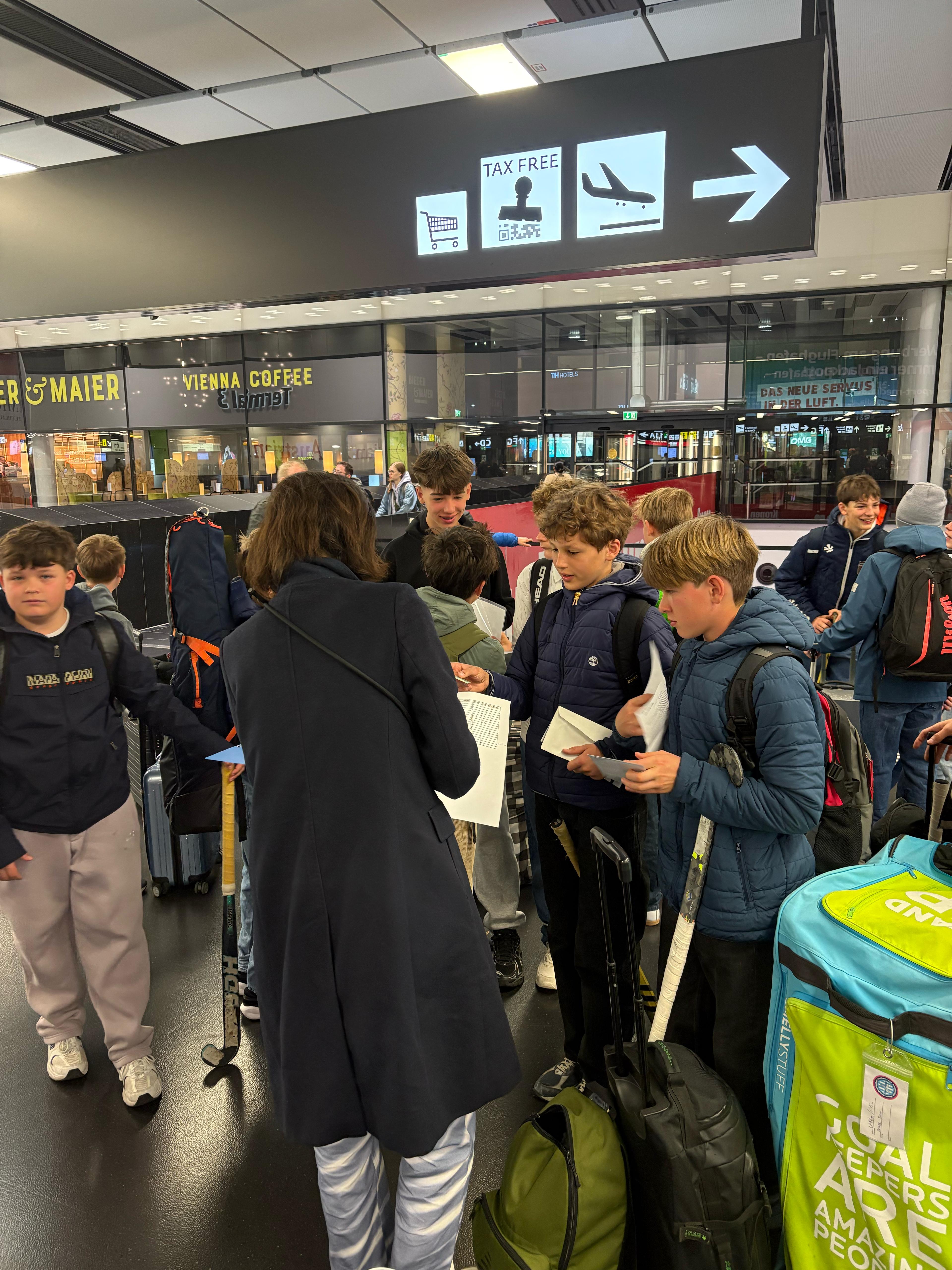 Unsere Reise zur U14 Youth EHL begann früh am Morgen mit dem Treffpunkt um 5:10 Uhr am Flughafen Wien. Der Flug verlief grundsätzlich reibungslos, allerdings gab es bei der Landung in Amsterdam eine leichte Verspätung. Leider kamen zwei unserer Koffer nicht mit – wir hoffen, dass sie noch rechtzeitig vor unserem ersten Spiel morgen um 13:30Uhr vs. Gantoise (BEL) im Hotel ankommen.