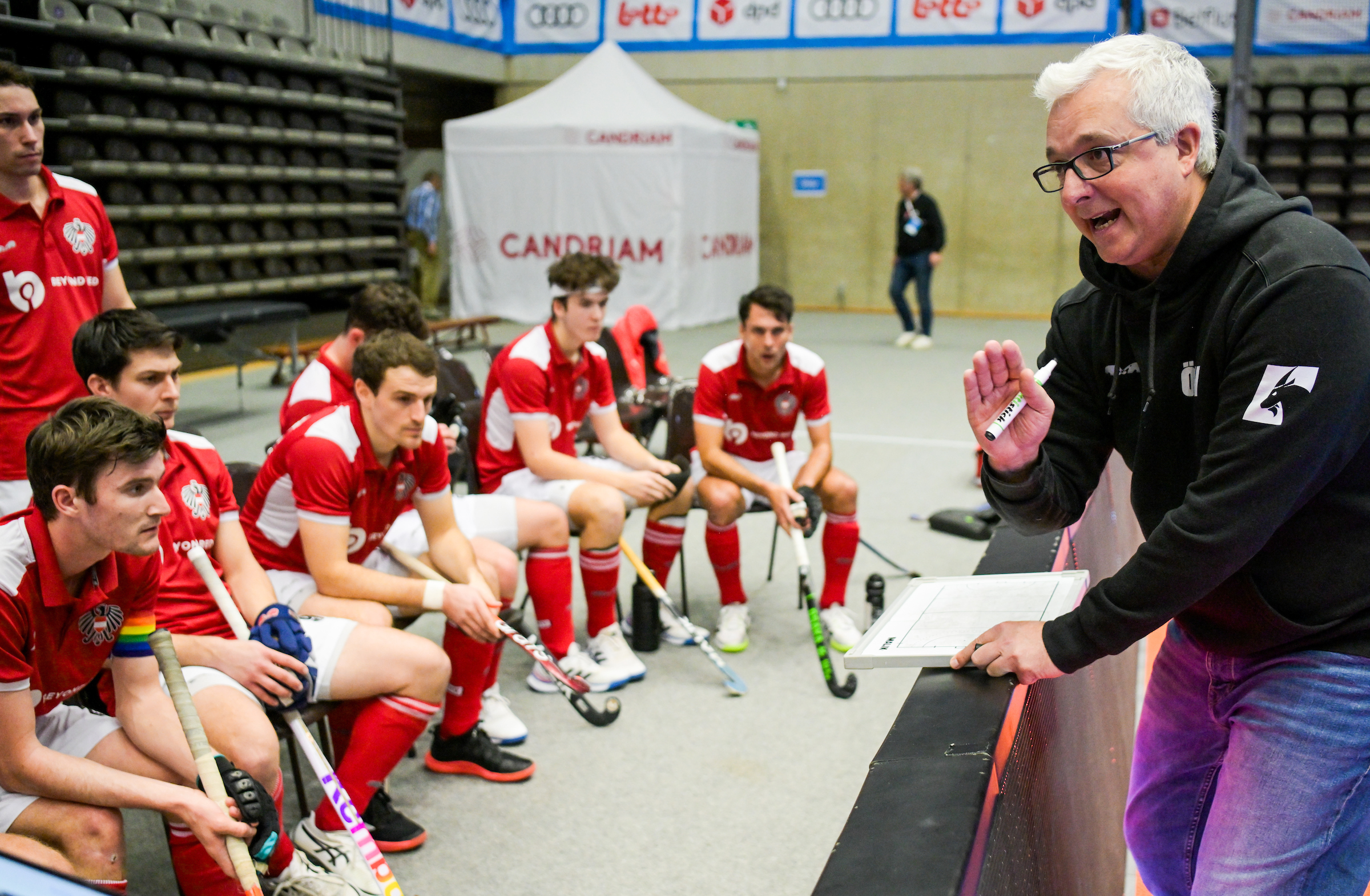 Eine geniale Verpflichtung gelang dem österreichischen Team jedenfalls noch vor ihrem Start in das erste Spiel. Kurzfristig und nahezu am letzten Drücker, wurde für den erkrankten Videoanalysten Sebastian Schwidder eine wahre Hallen-Hockey-Legende verpflichtet.