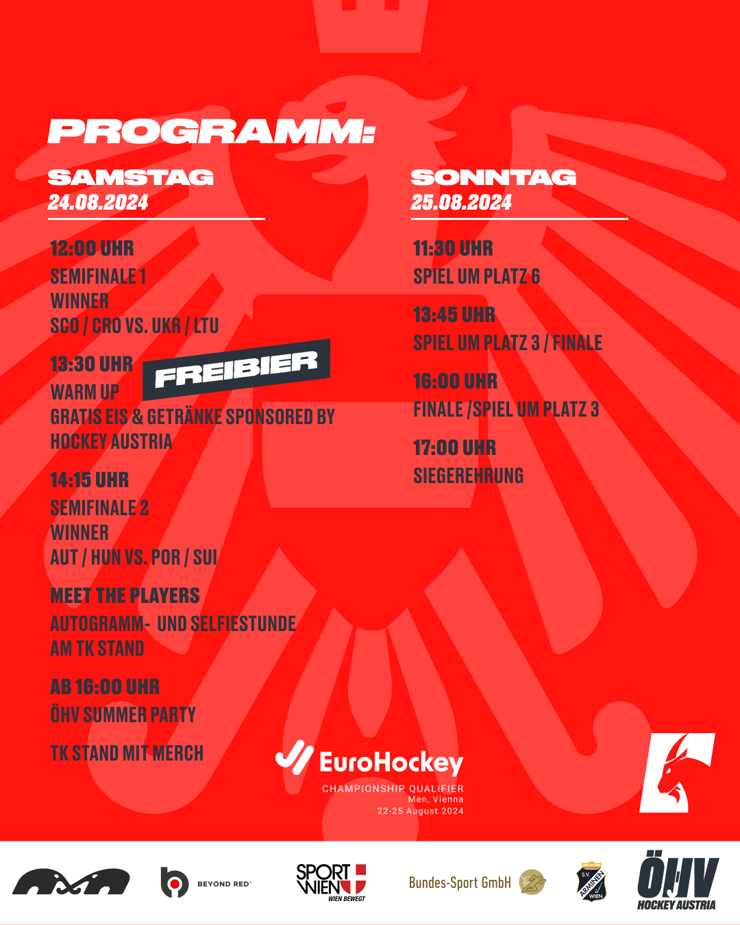 Was ist zu tun? Unter allen Hockey-Fans, die sich vorab online registrieren und am Samstag (24.08.) oder Sonntag (25.08.) mit ihrem Gewinnspiel-Code ins Waldstadion kommen, verlost der ÖHV zusammen mit TK Sports GmbH zwei VIP Fanreisen zur Hallenweltmeisterschaft 2025 in Kroatien! Die Reise beinhaltet Anreise und Übernachtung für je zwei Personen.