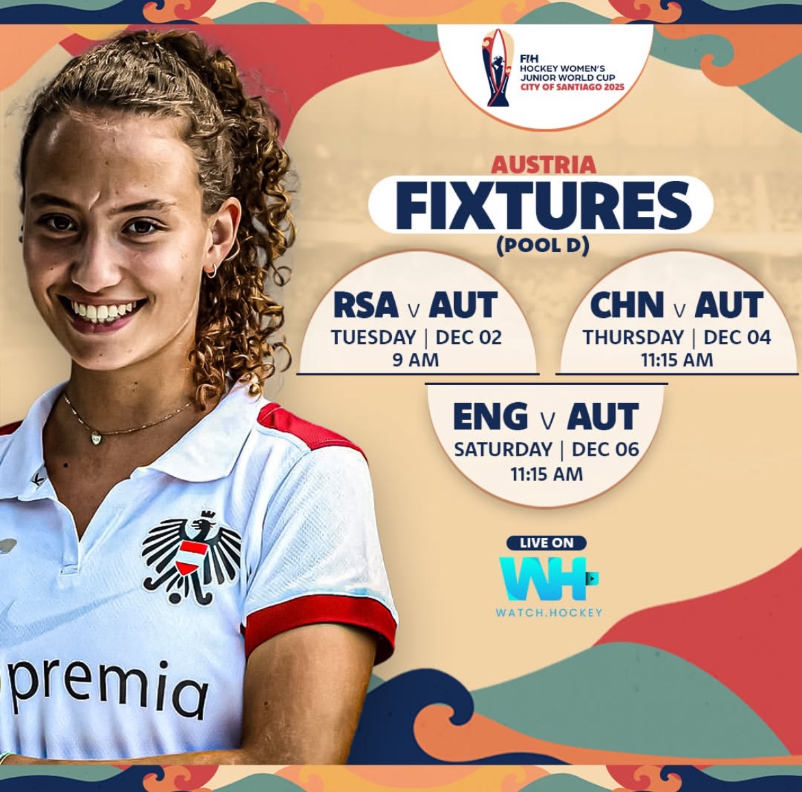 Österreich (Junior WR #19) kämpft in Santiago mit China (WR #16), England (WR #4) und Südafrika (WR #11) in Gruppe D um die weiteren Platzierungen. Alle Gegnerinnen der Young Red Foxes haben eine lange Liste mit WM-Teilnahmen vorzuweisen. Österreich spielte erst einmal bei einer Juniorinnen-Weltmeisterschaft mit - nämlich 2022 - und erreichte in Südafrika den hervorrageneden 10. Platz.