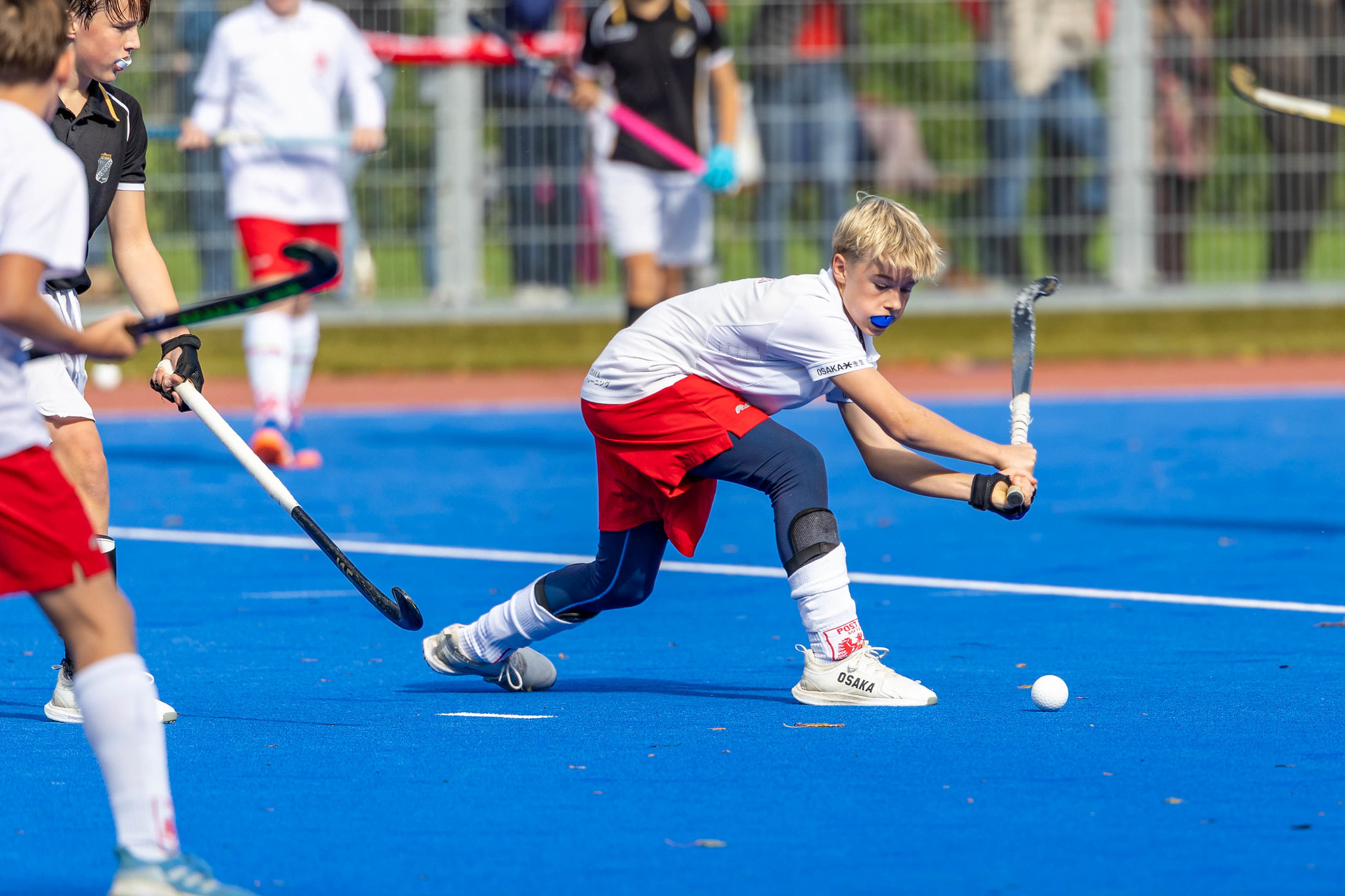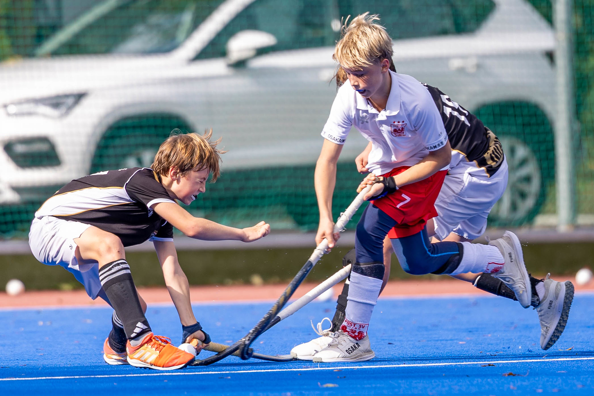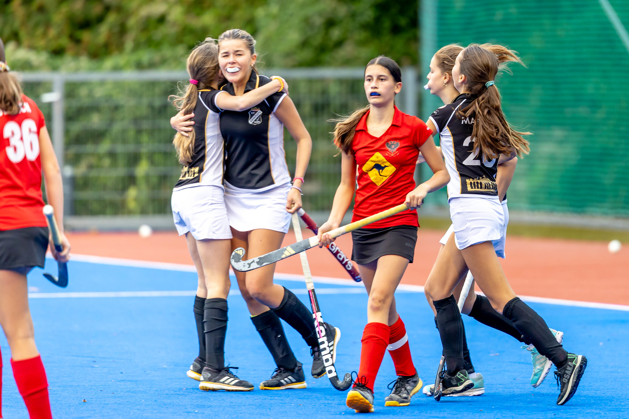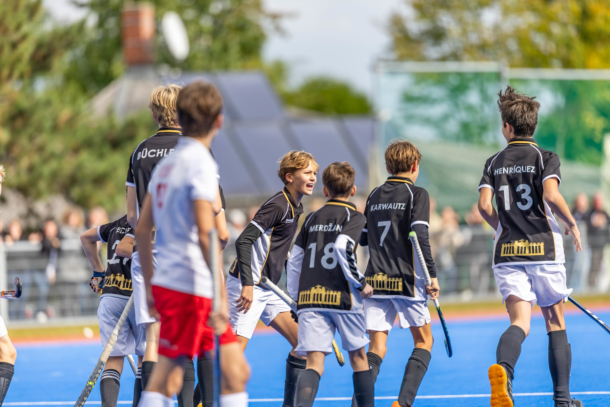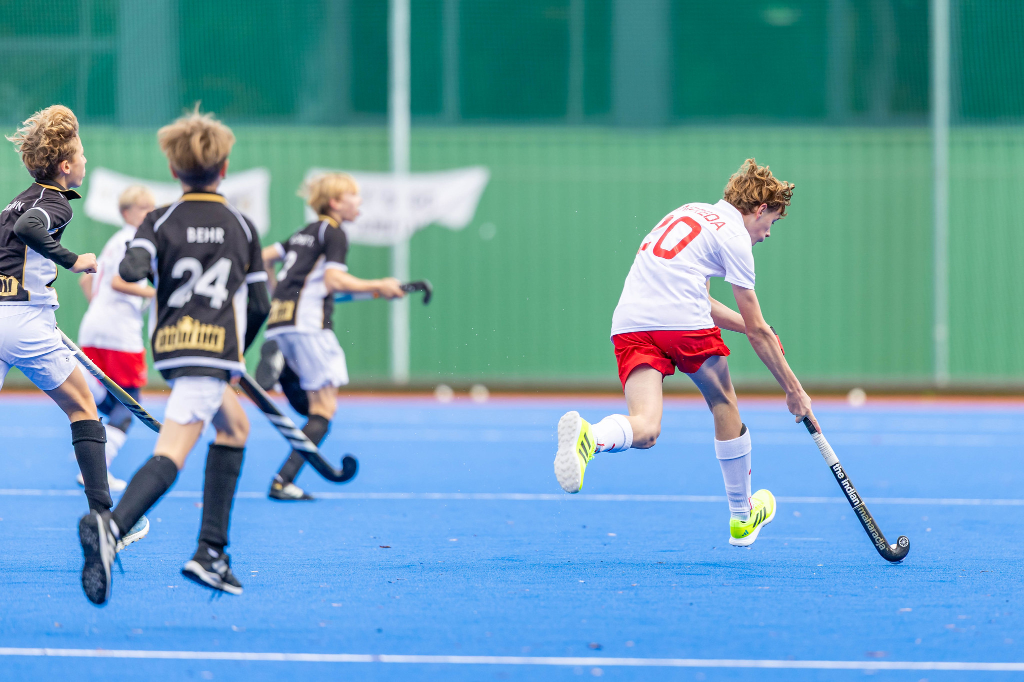 Im Gegenzug Strafecke für SV Arminen aber Paul Lausmann setzt den Ball neben das Tor. Es geht hin und her - starker Einsatz von beiden Mannschaften. Frühes Pressing, schnelles Kombinationsspiel. Ein spannendes und hochklassiges U14-Finale. Max Arnold hat den Ball im gegnerischen Kreis, mit einem starken Haken überspielt er einen Verteidiger und knallt den Ball mit der argentinischen Rückhand in das Tor. 1:0 für SV Arminen.
