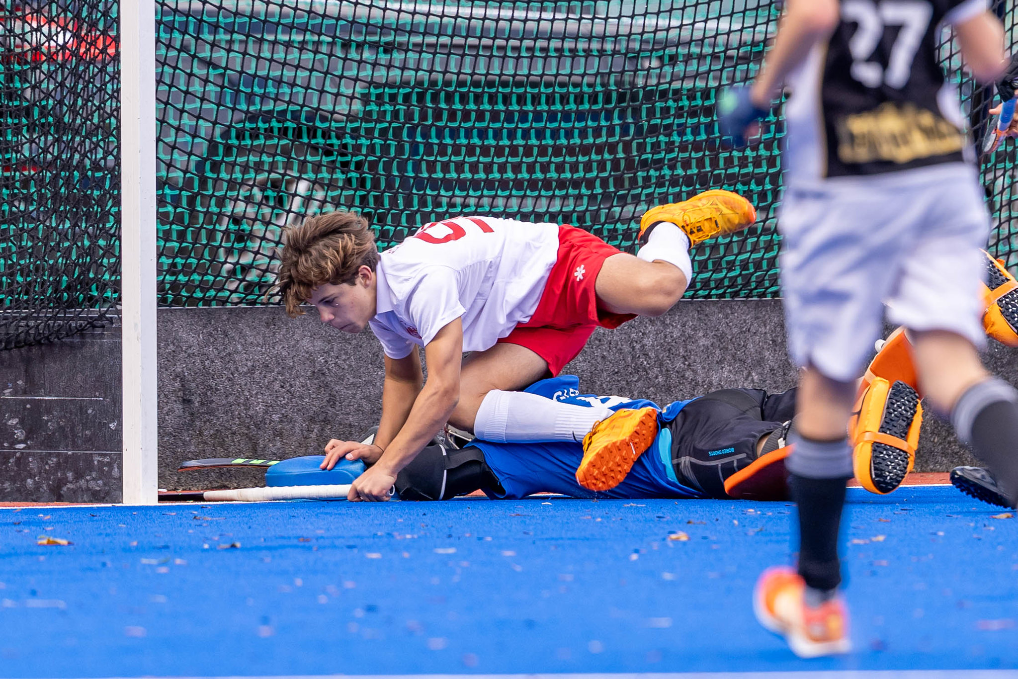 Nach Seitenwechsel geht es ausgeglichen hin und her. Post SV hat eine Riesenchance, aber der Ball kullert knapp am Tor vorbei. Strafecken auf beiden Seiten können nicht genutzt werden - die Eckenabwehr von beiden Mannschaften funktioniert.