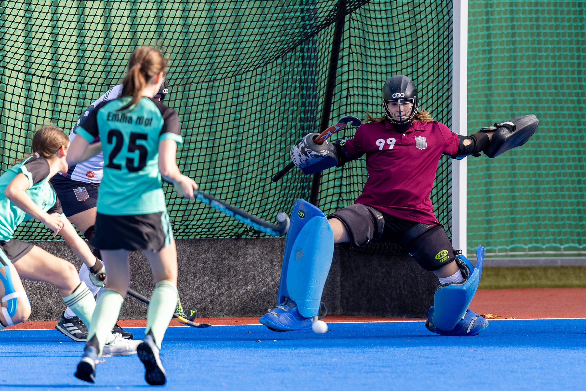 Im zweiten Viertel wendet sich das Blatt. HC Wien findet besser in das Spiel und kommt zu einigen gefährlichen Aktionen. Aber eine Strafecke und ein Torschuss von Marie Kraak verfehlen knapp ihr Ziel. Kurz vor der Halbzeit drängt Girls United wieder auf die Führung, aber Torfrau Milla Kratky hält ihr Tor sauber.