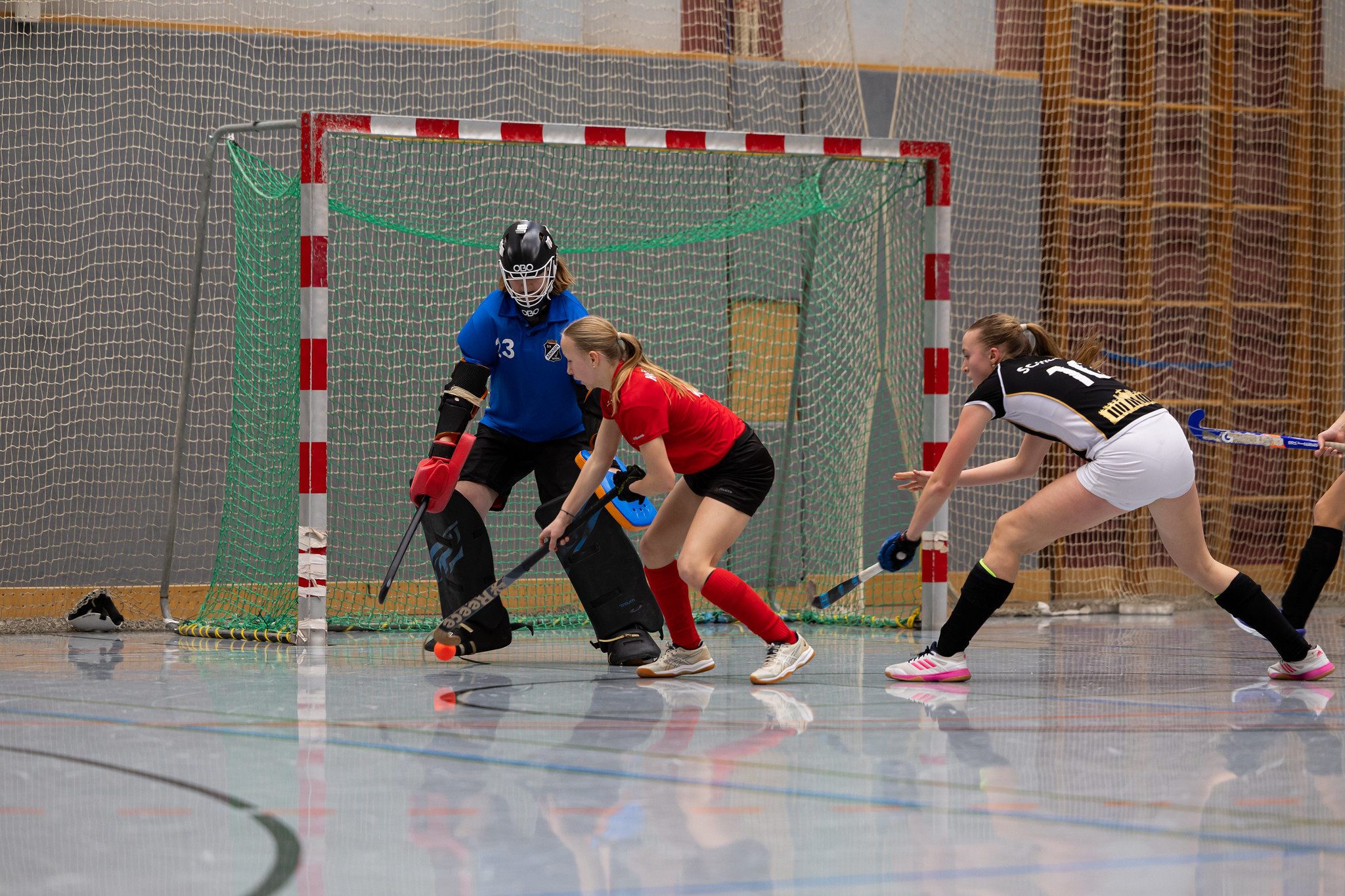 Kurz vor der Halbzeit die zweite Strafecke für HC Wien, aber Torfrau Emma Lodes hält bereits zum zweiten Mal. Mit 2:2 geht es in die Halbzeit.