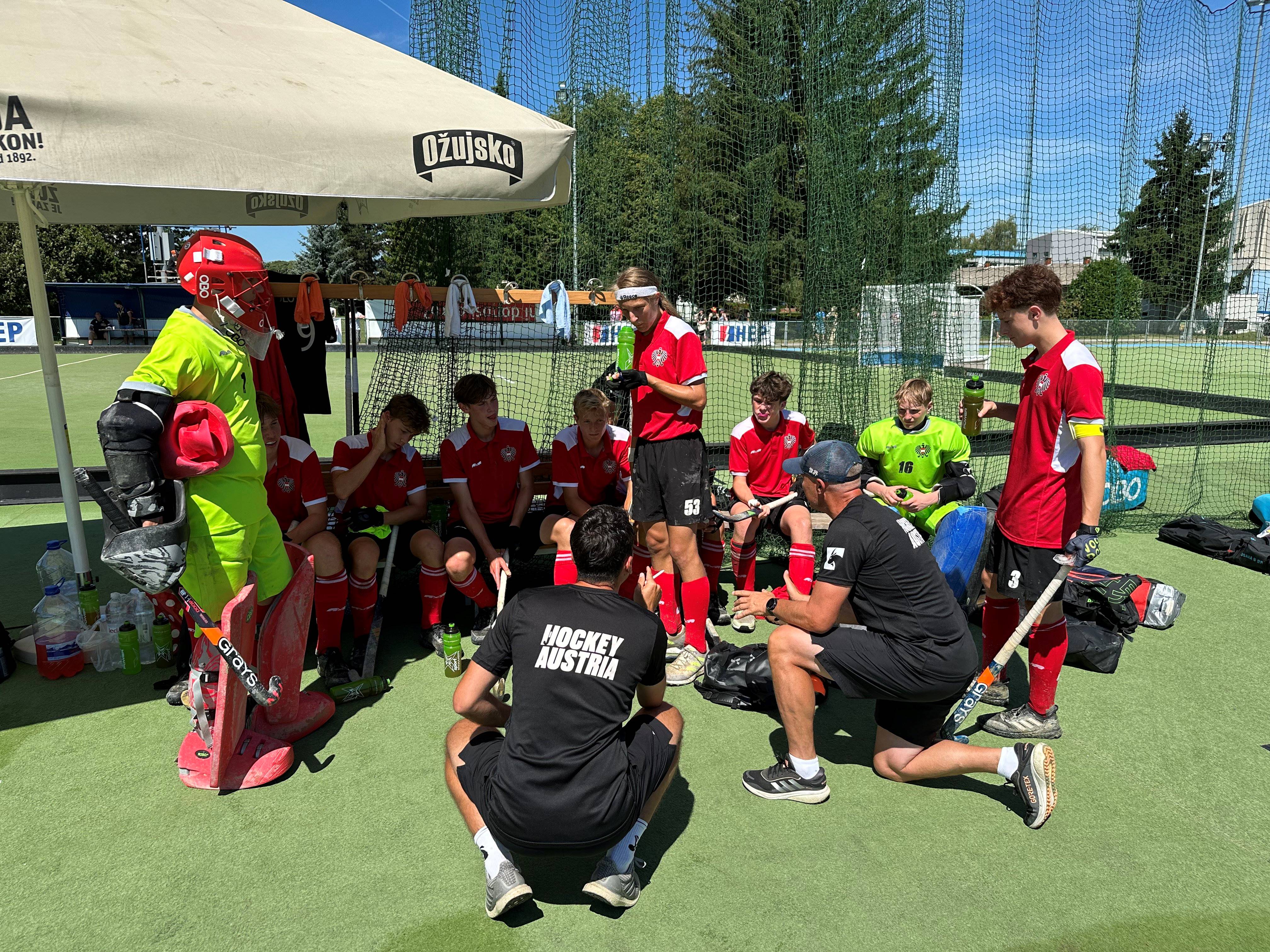 Die österreichischen Burschen gehen taktisch sehr gut eingestellt in diese Begegnung und liefern ihr sicherlich bestes Turnierspiel ab. Sie haben mit Lukas Müller im Tor einen ganz starken Rückhalt, der der Mannschaft die nötige Sicherheit gibt.
