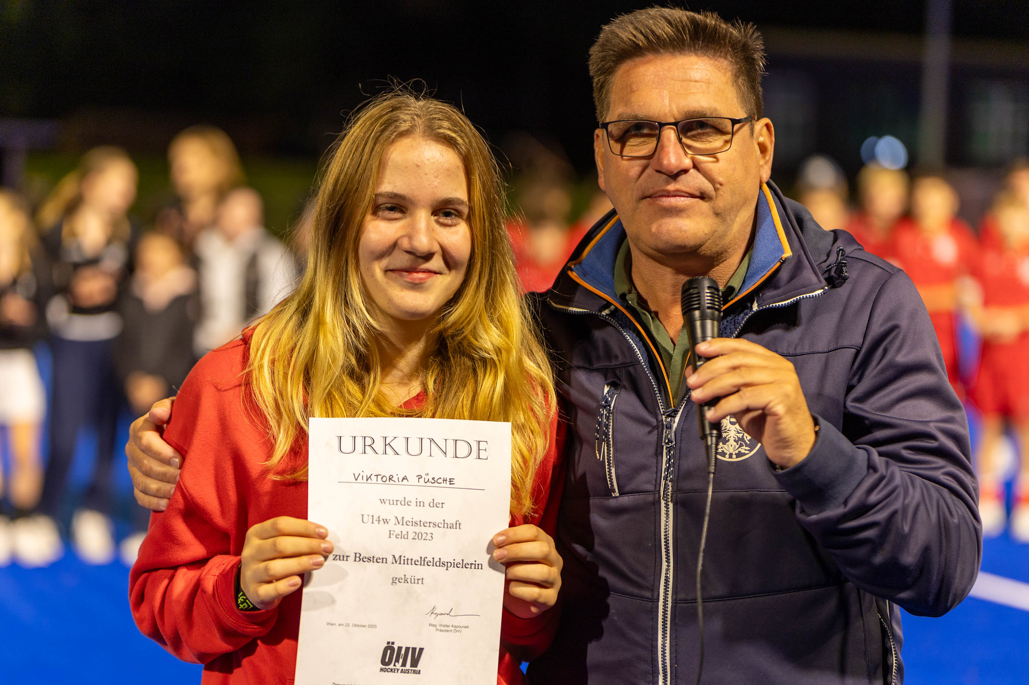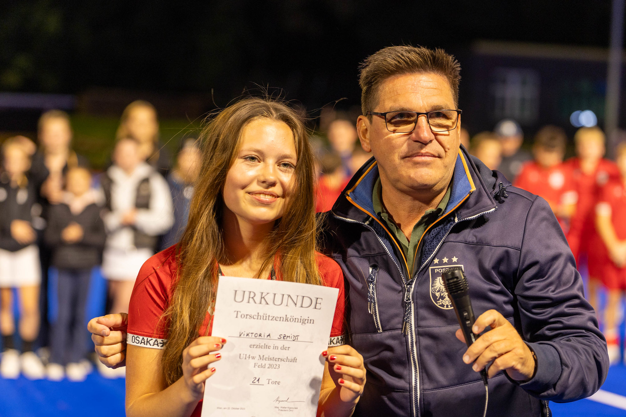 Bei den individuellen Awards der U14 weiblich gehen die Urkunden an die beste Stürmerin und Torschützenkönigin Viktoria Szmidt, die beste Mittelfeld-Spielerin Victoria Püsche, die beste Verteidigerin Celina Kölbl und Sofie Draxler als beste Torfrau.